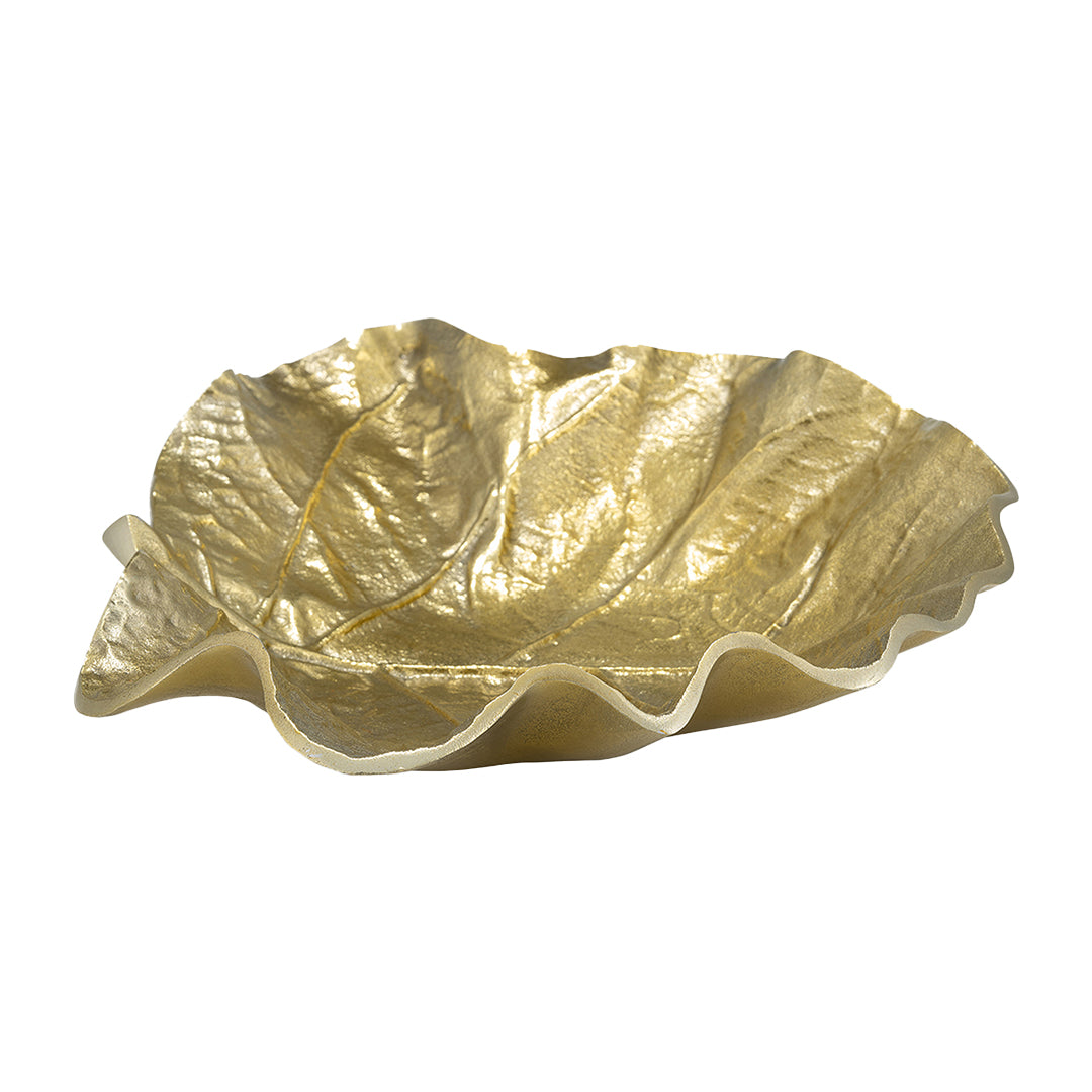 Adorn your space with the M Décore Gold Metal Round Leaf Tray
