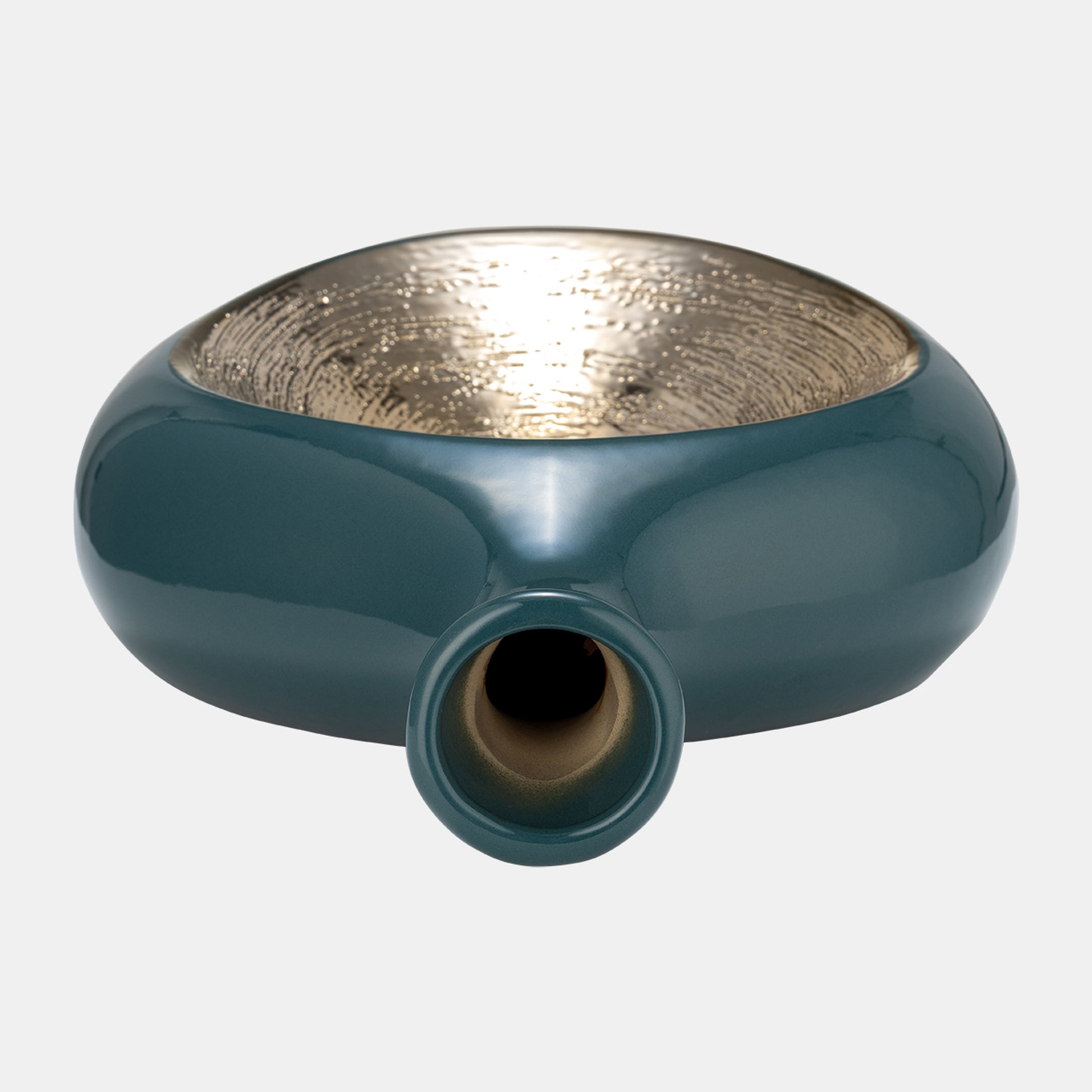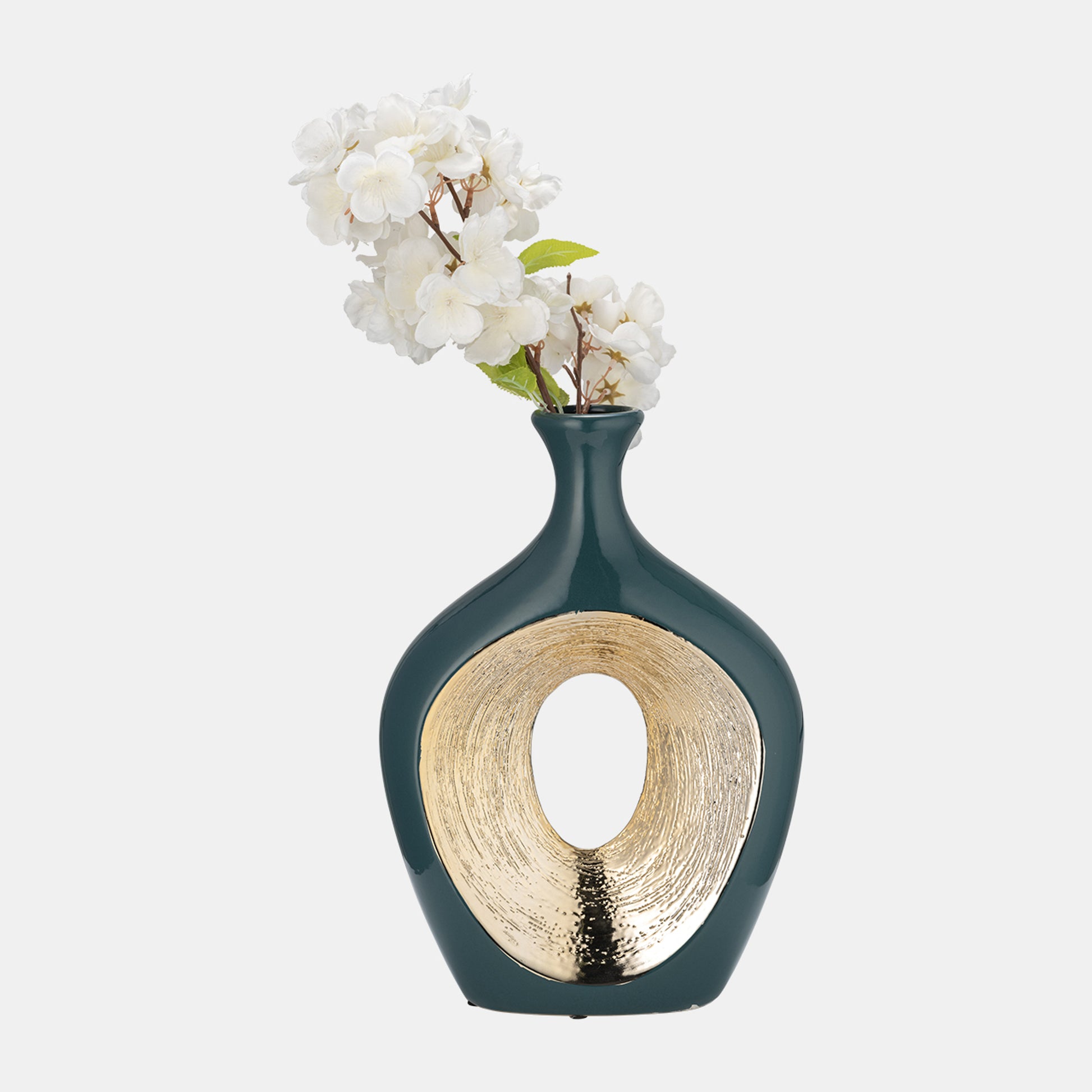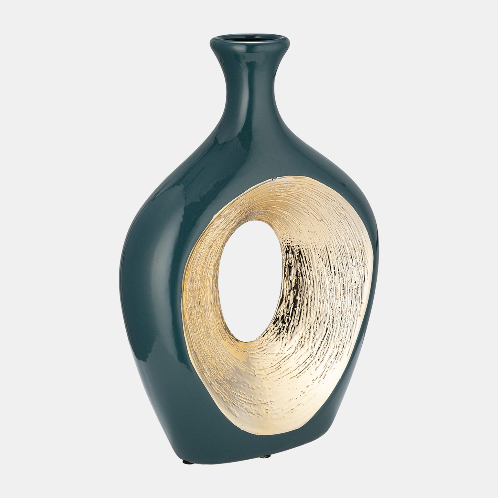 Adorn your space with the M Décore Ceramic two-tone Scratched Oval Vase. Blue and Gold