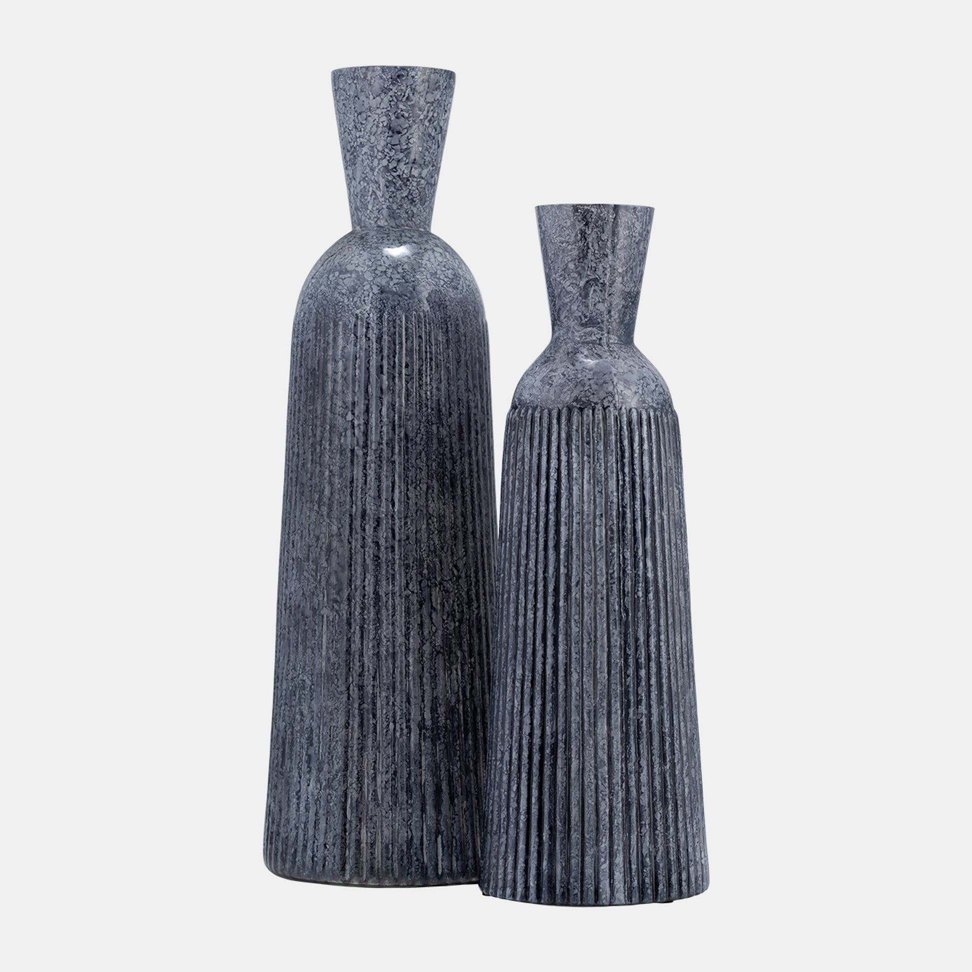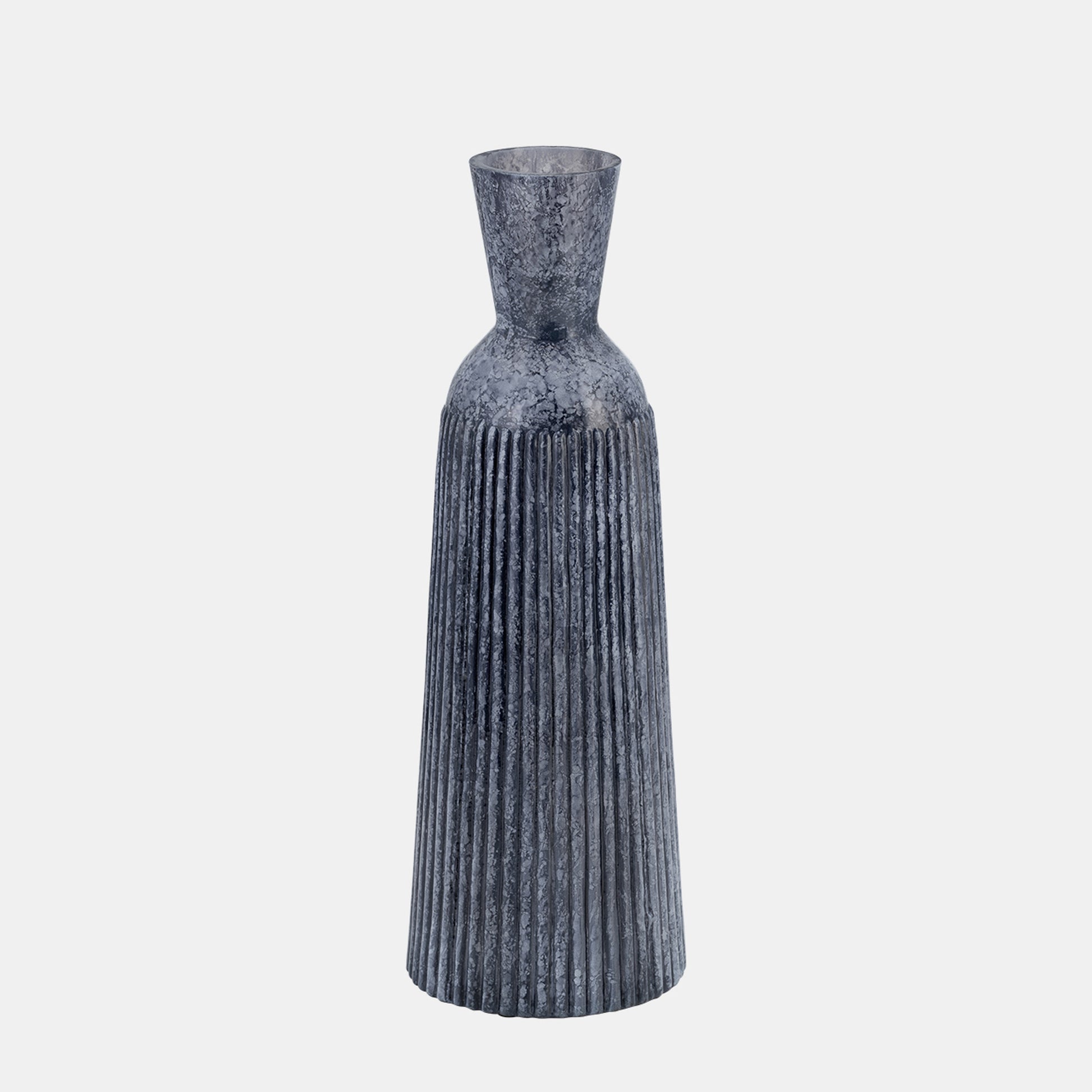 Adorn your space with the M Décore 16" Grooved Glass Vase in Blue