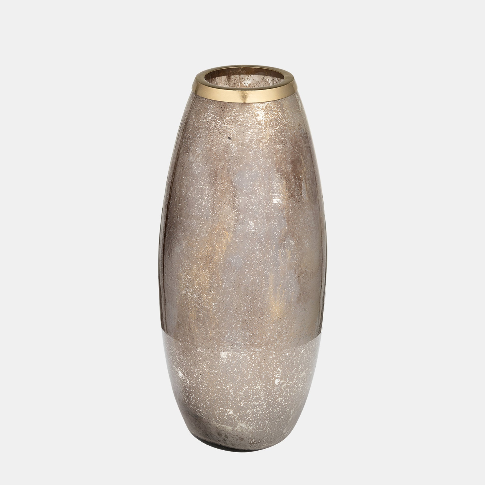Adorn your space with the M Décore 18" Glass Vase W/ Metal Ring in Champagne.