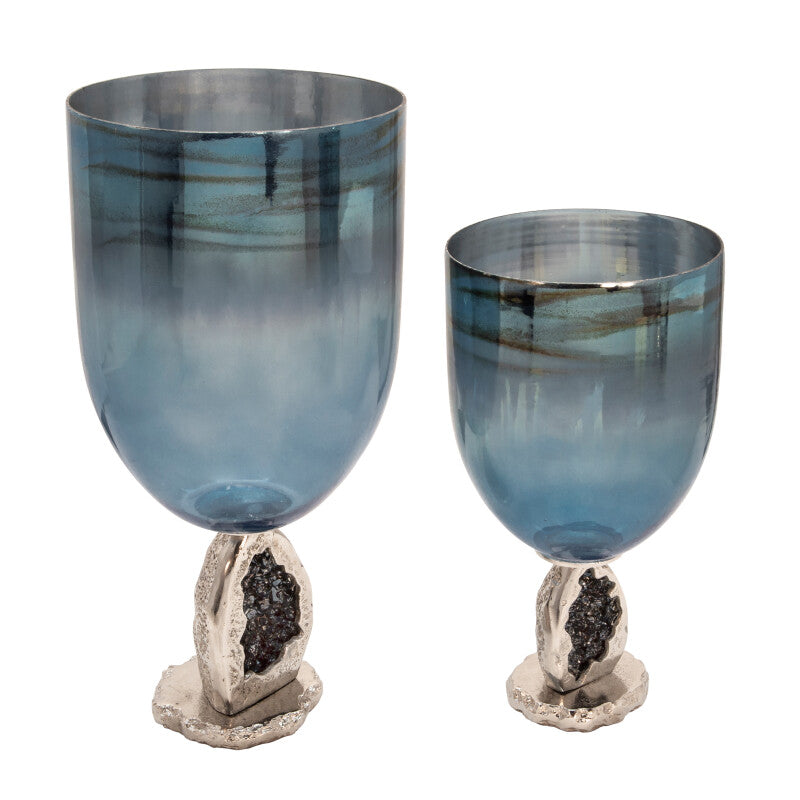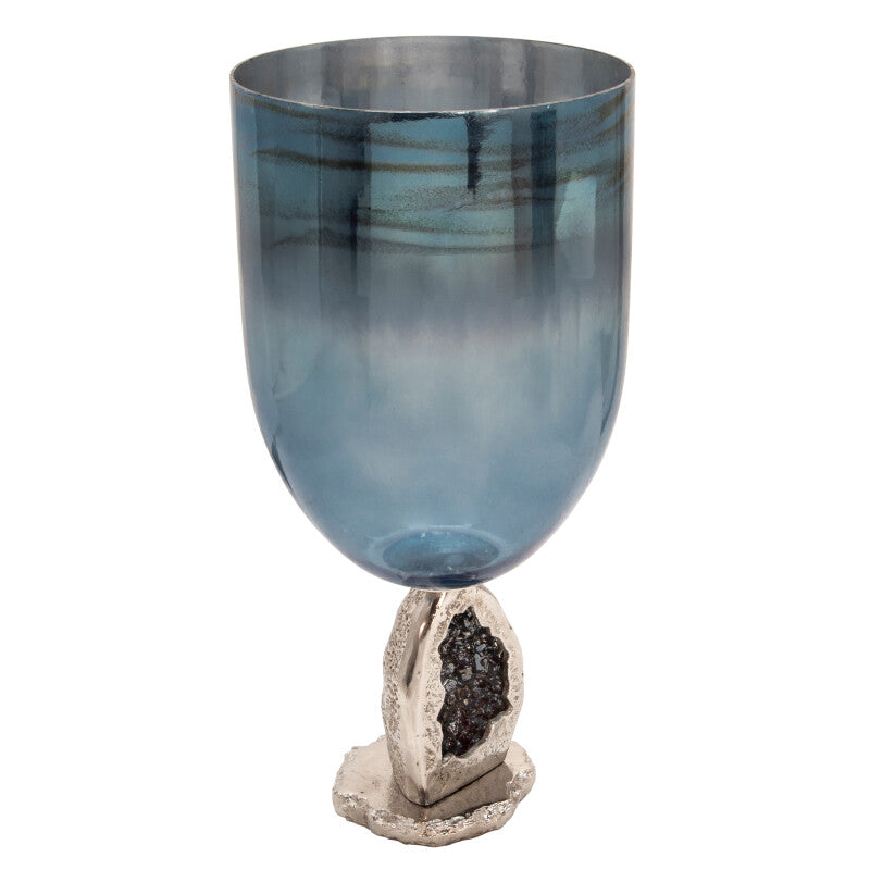 A cup that fits King Triton or a mermaid Queen, this blue glass hurricane cup will have sipping in royalty. Its also a great assemble for decoration with its crystal rock base.