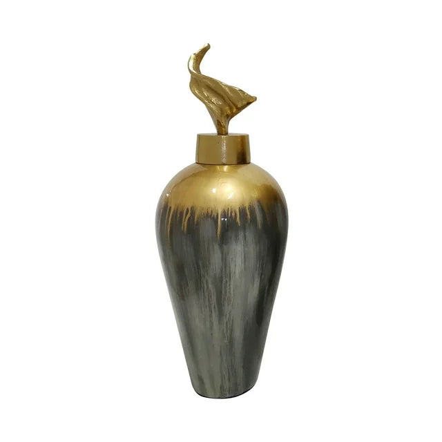 Adorn your space with the M Décore Metal Vase with Lily Lid.
