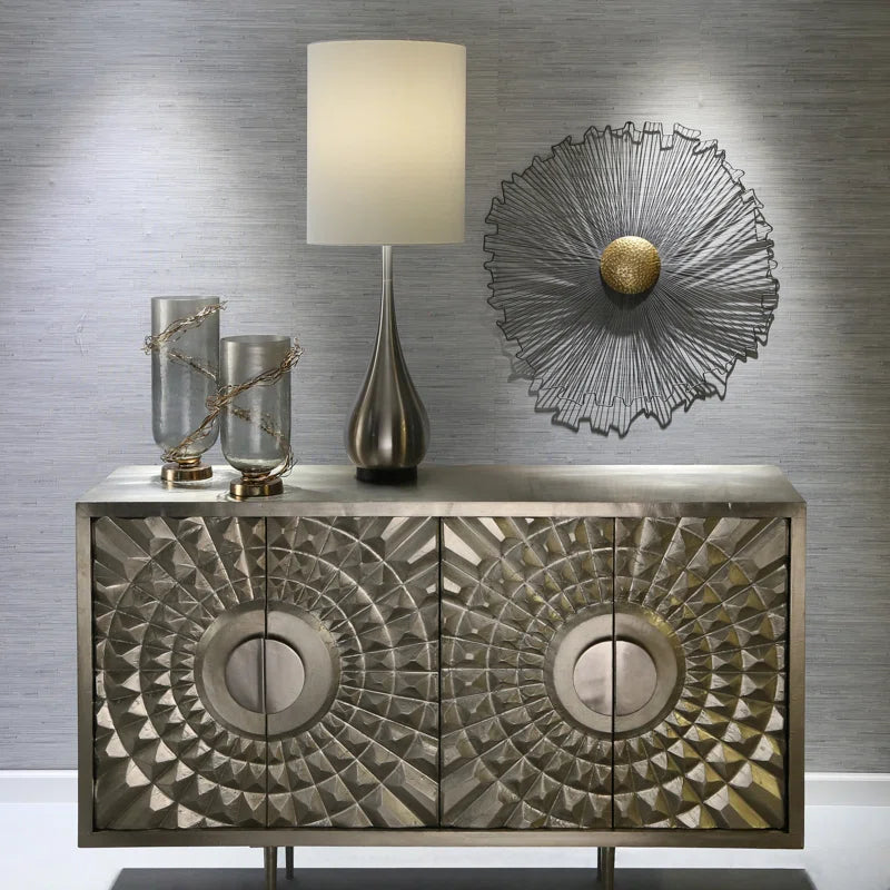 Metal base finished in oil rubbed bronze. Metal rectangle