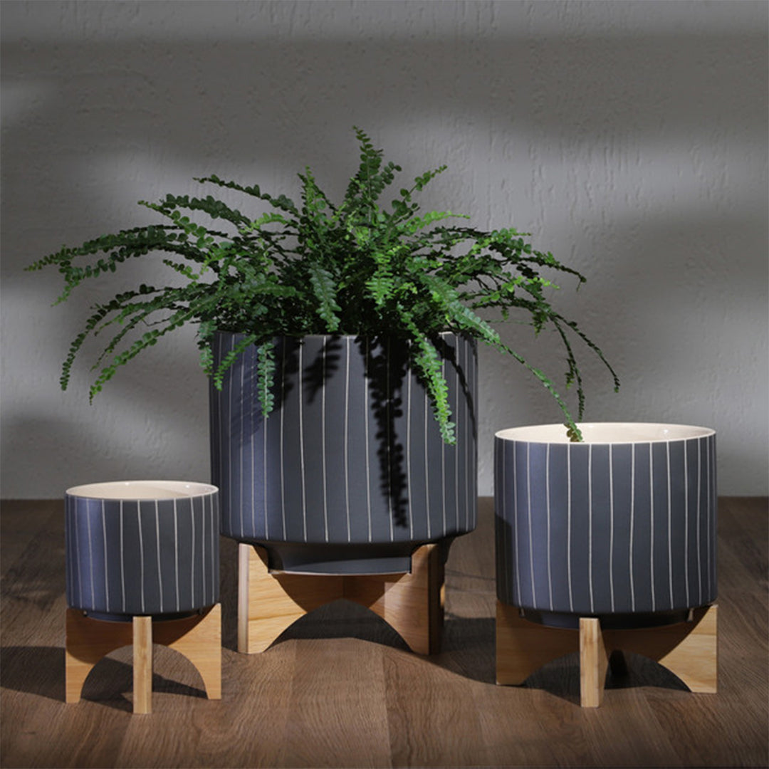 5" Stripes planter with stand in Gray