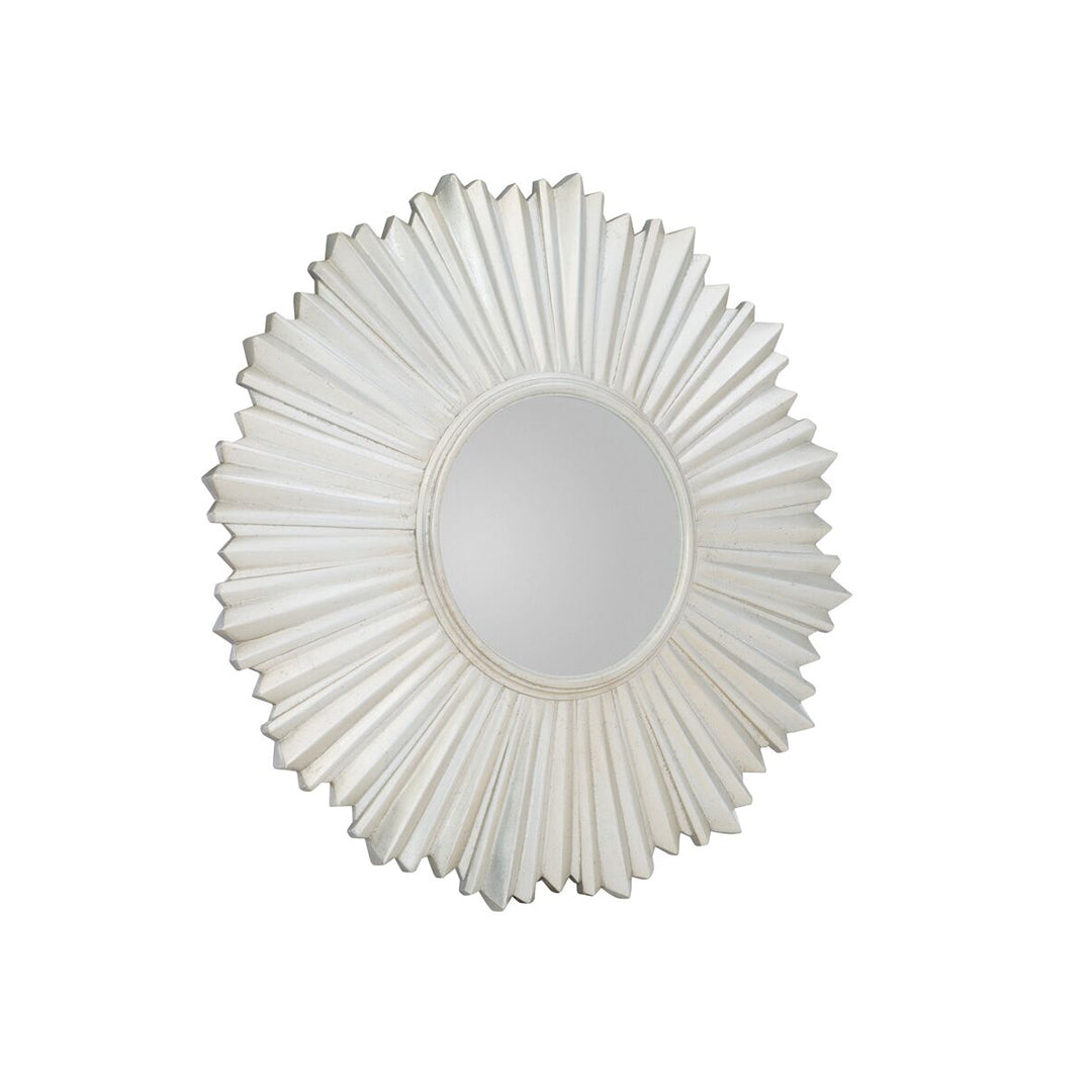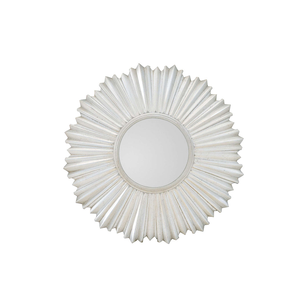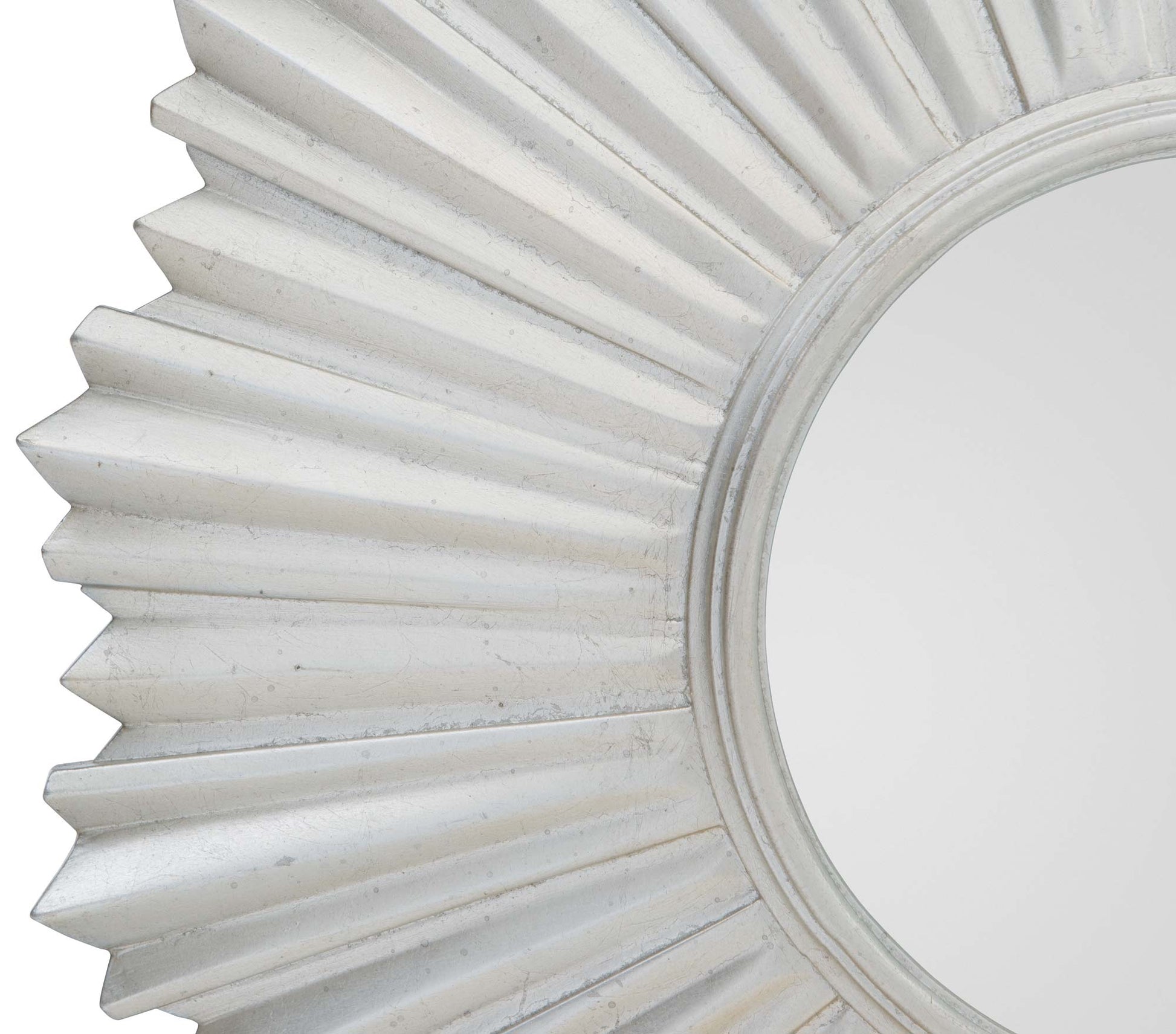 The Allure Round Mirror is as much wall art as functional mirror. A tastefully decorative starburst design surrounds the inset convex mirrored glass. Crafted from cast resin and finished in silver leaf, this piece is a welcome addition to any room.