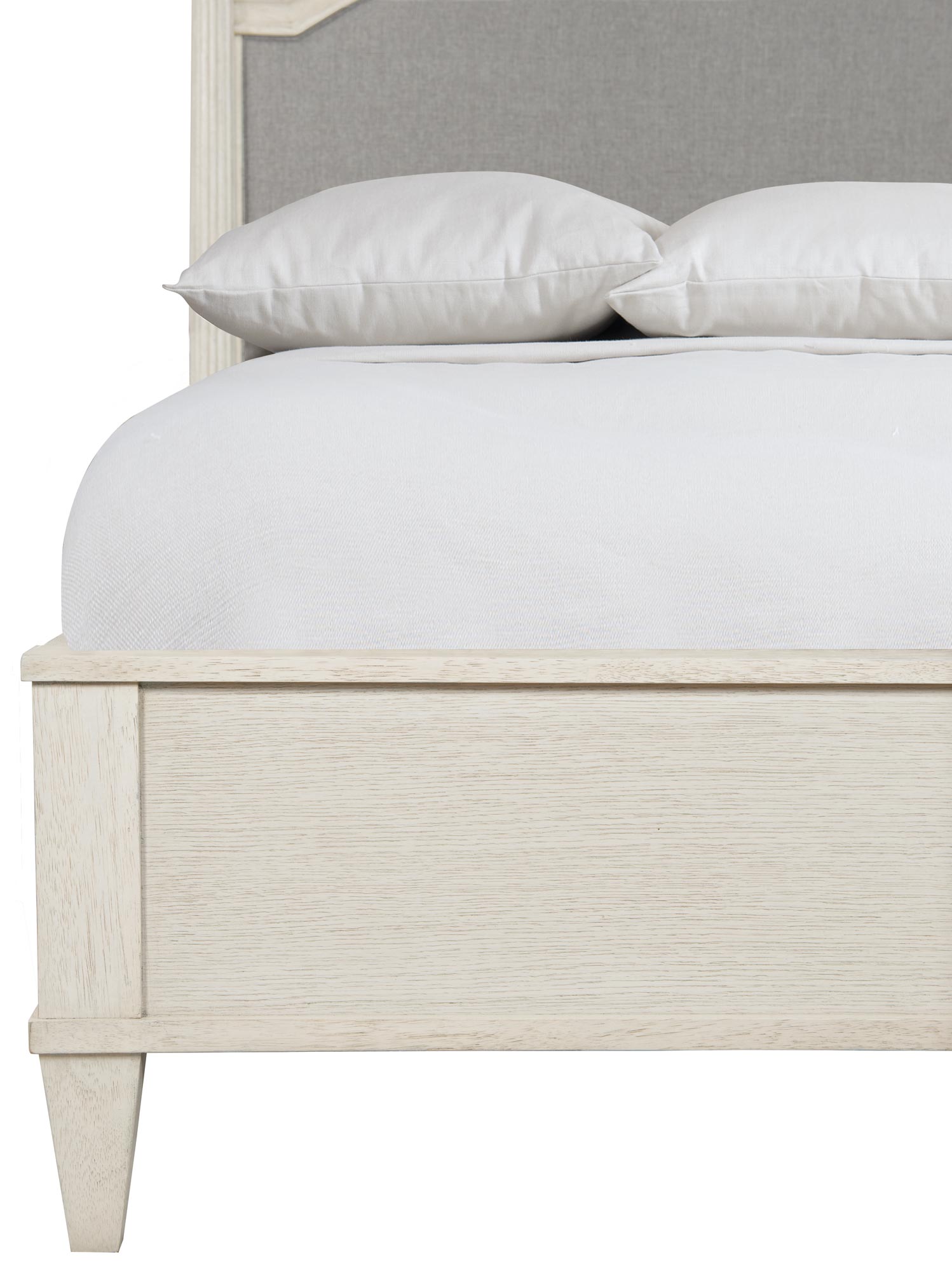 This collection draws its inspiration from the light and elegant lines of the neoclassic design, taking a simple and modern approach with a fresh appeal. This bed, with its detailed and careful composition, is clearly inspired by classical design. An instant heirloom, its dominant feature is its upholstered wood-framed headboard framed by majestic fluted posts. It easily fits into both formal and informal rooms.