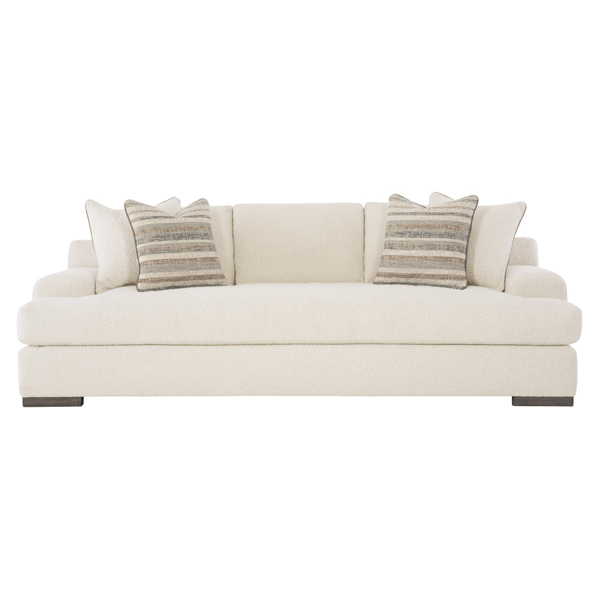 Invitingly plump with crisp stitching and recessed arms, the Andie sofa beckons with style and craftsmanship. The shapely design and low back make this sofa perfect to float, with an overall look that is gracious and welcoming. It's all supported by wide, block legs that elevate this sofa to superstar status.