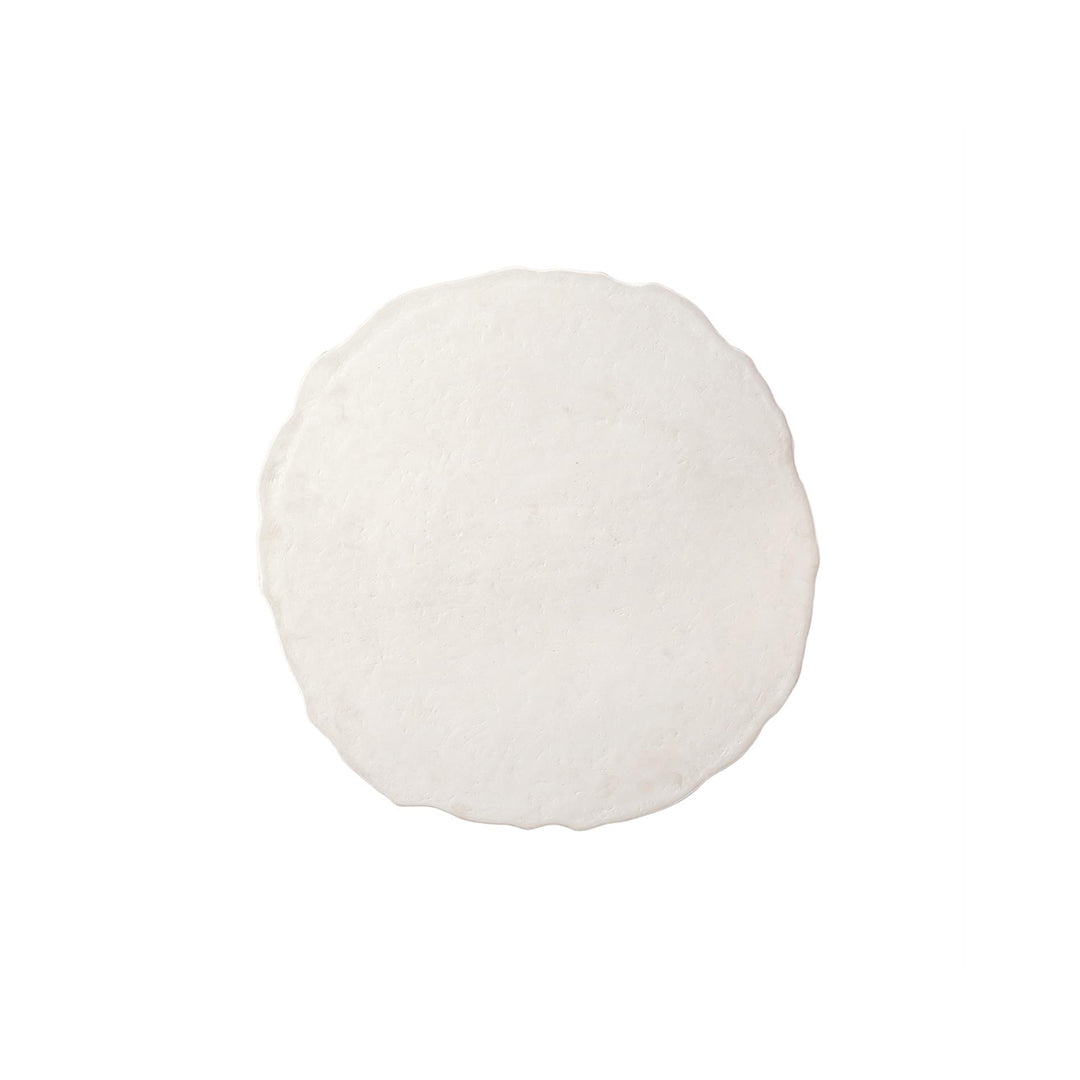 Crafted from cast resin over a steel frame, the Arbor Round Chairside Table artfully juxtaposes modern materials with natural forms. Finished in a Chalky White, the faux bois base evokes tree branches, while the top echoes the shape of a cross-cut tree trunk slice. The unique character of this asymmetrical design brings movement and flow.