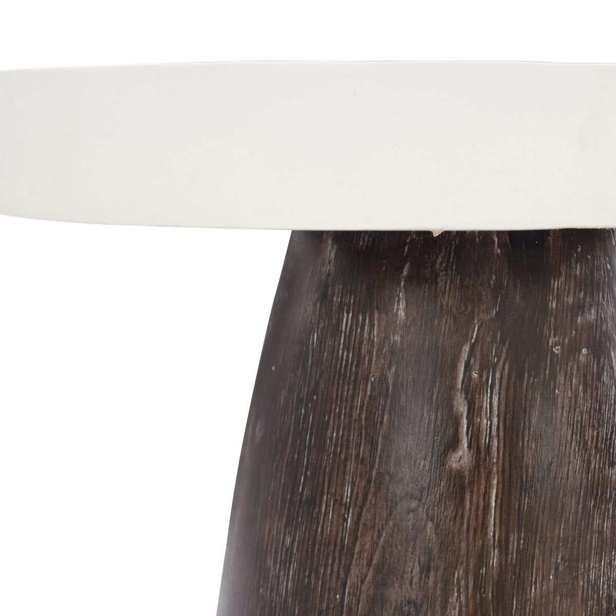 The Logan Square collection is casually sophisticated, combining modern minimalism with a cool retro sentiment and 70s revival style. With clean lines and an architectural structure, the Arlo end table offers a slice of modern simplicity. Crafted entirely of cast concrete, the table combines a round top in Bone finish with a base finished in a dark brownstone. The wood-grain texture on the base gives it a rustic, organic feel in contrast to the smooth, unembellished concrete.