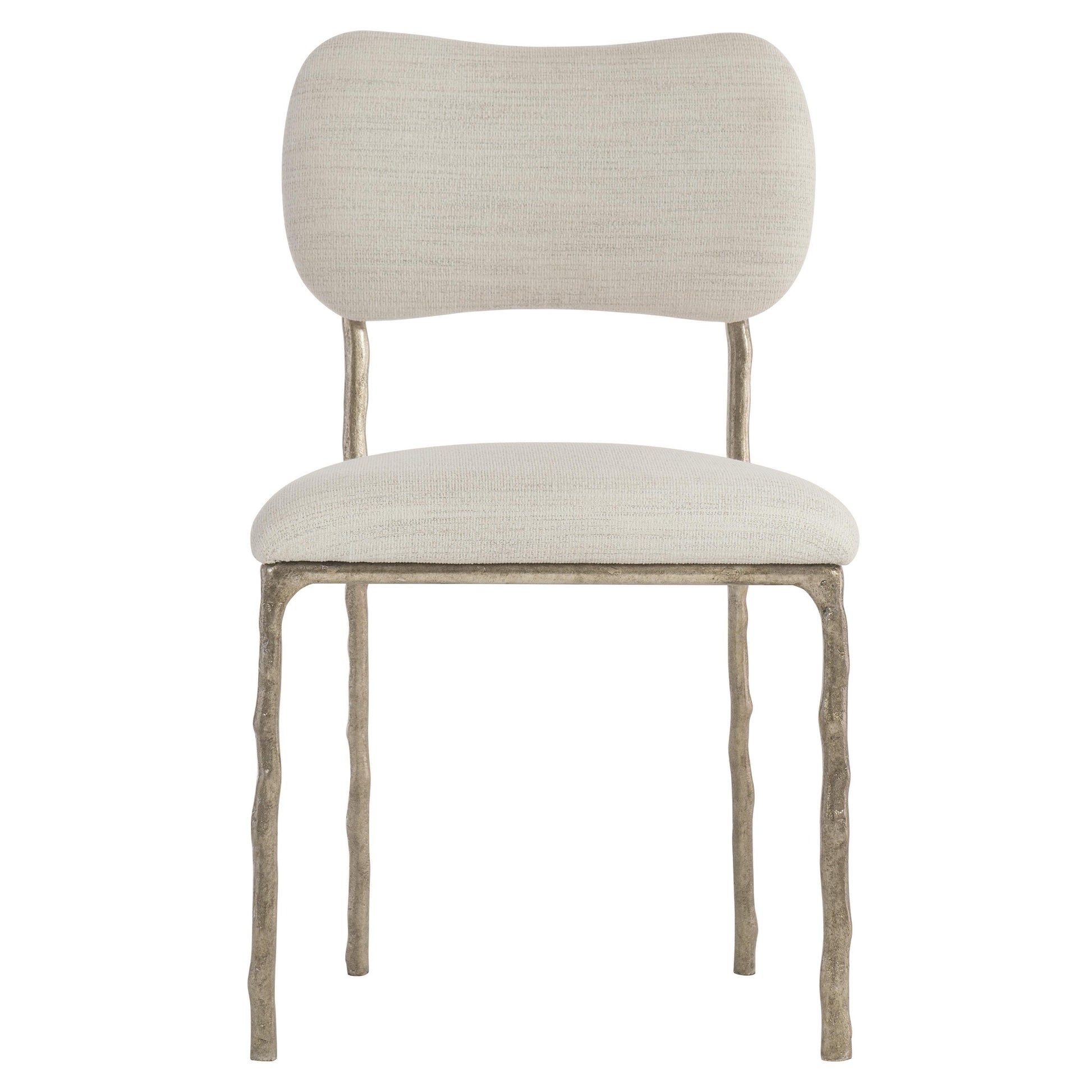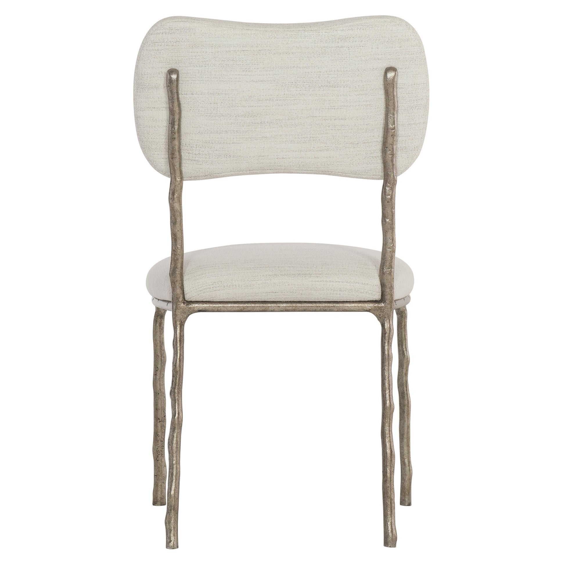 The Atticus side chair is in a class of its own. The clean, simple design features an upholstered slip seat and half back, but what truly captivates is the textural solid steel frame in a hammered steel finish. The finely crafted legs reveal a hint of the faux bois tradition for a timeless, high-end look.
