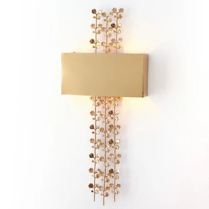 Lovely polished brass blooms rise and fall from the brass shade of our sconce. This tranquil sconce will light your home beautifully. Magnificent in design and structure, the sconce is available only with hard-wired option.