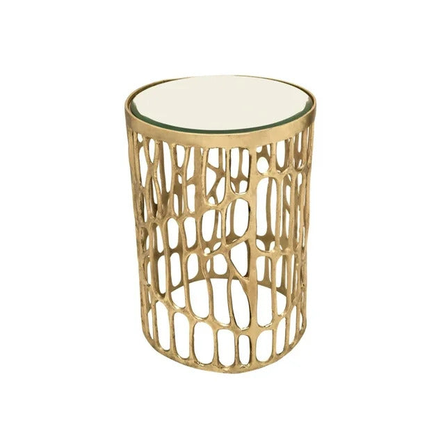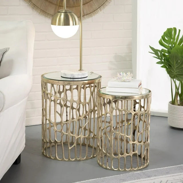 S/2 Aluminum 21/19" Mirror Top Accent Table, Gold