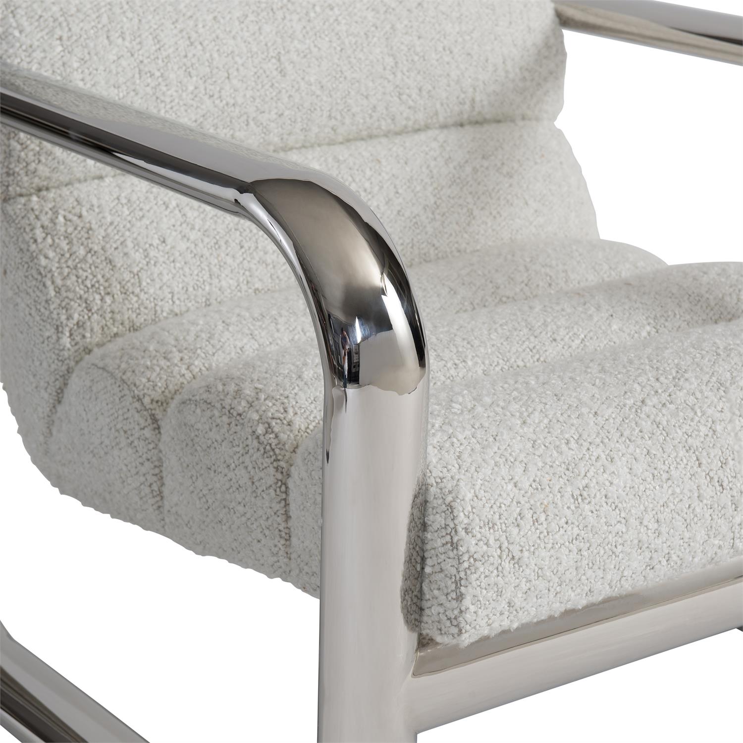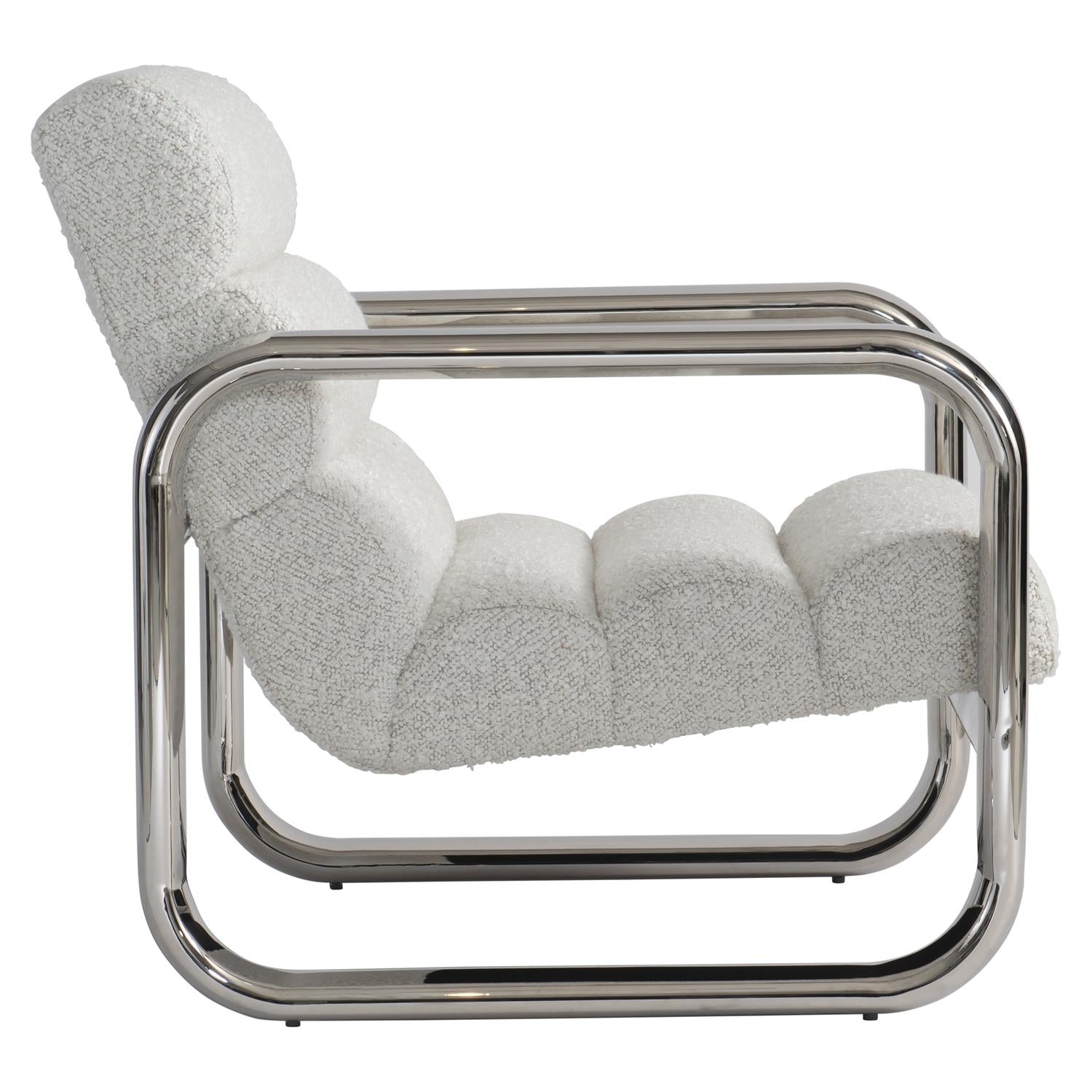 Two squares of stainless steel on the Axis chair allow the channeled seat to float between them. Crossbars in the back and front create structure. The look is ultra-modern without sacrificing in deep comfort.