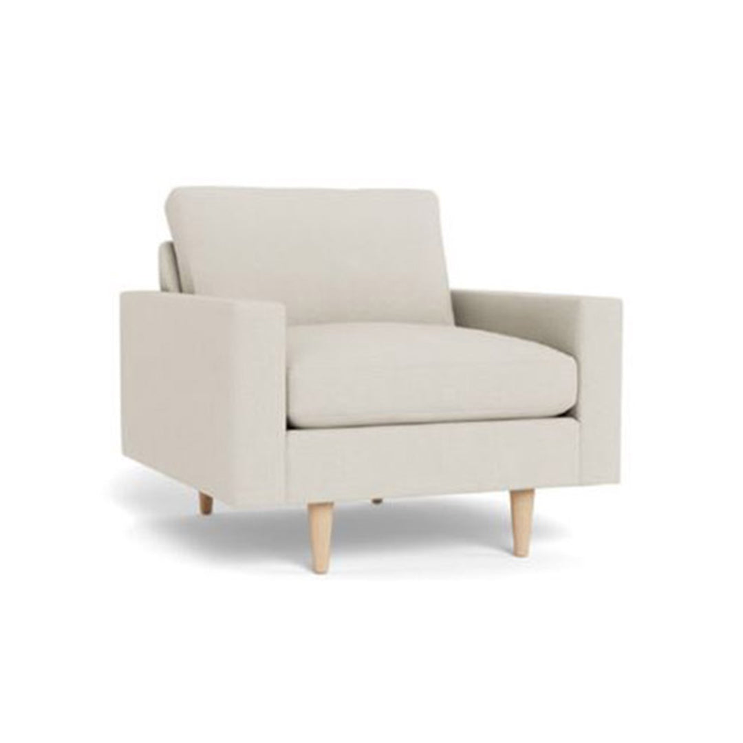 A sublime fusion of function and aesthetic, the Brentwood Chair from the Love Joy Bliss collection by Miranda Kerr welcomes with clean-lined arms, tapered legs, and a refined silhouette upholstered in a Justify Natural performance fabric.