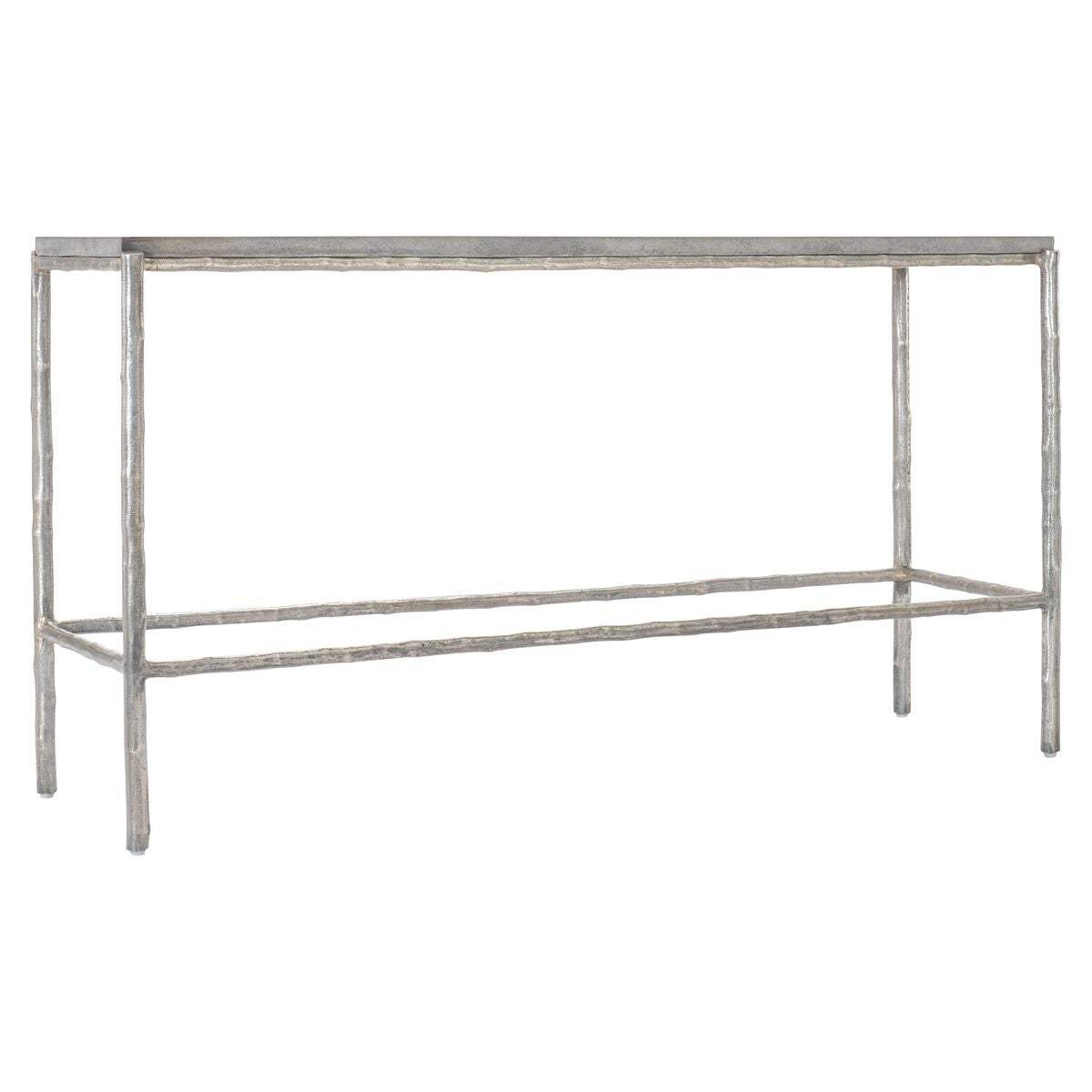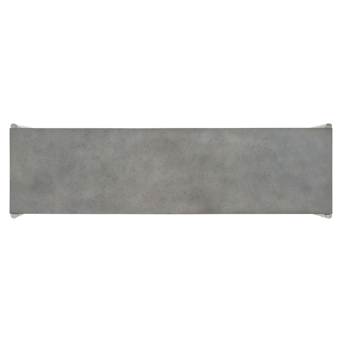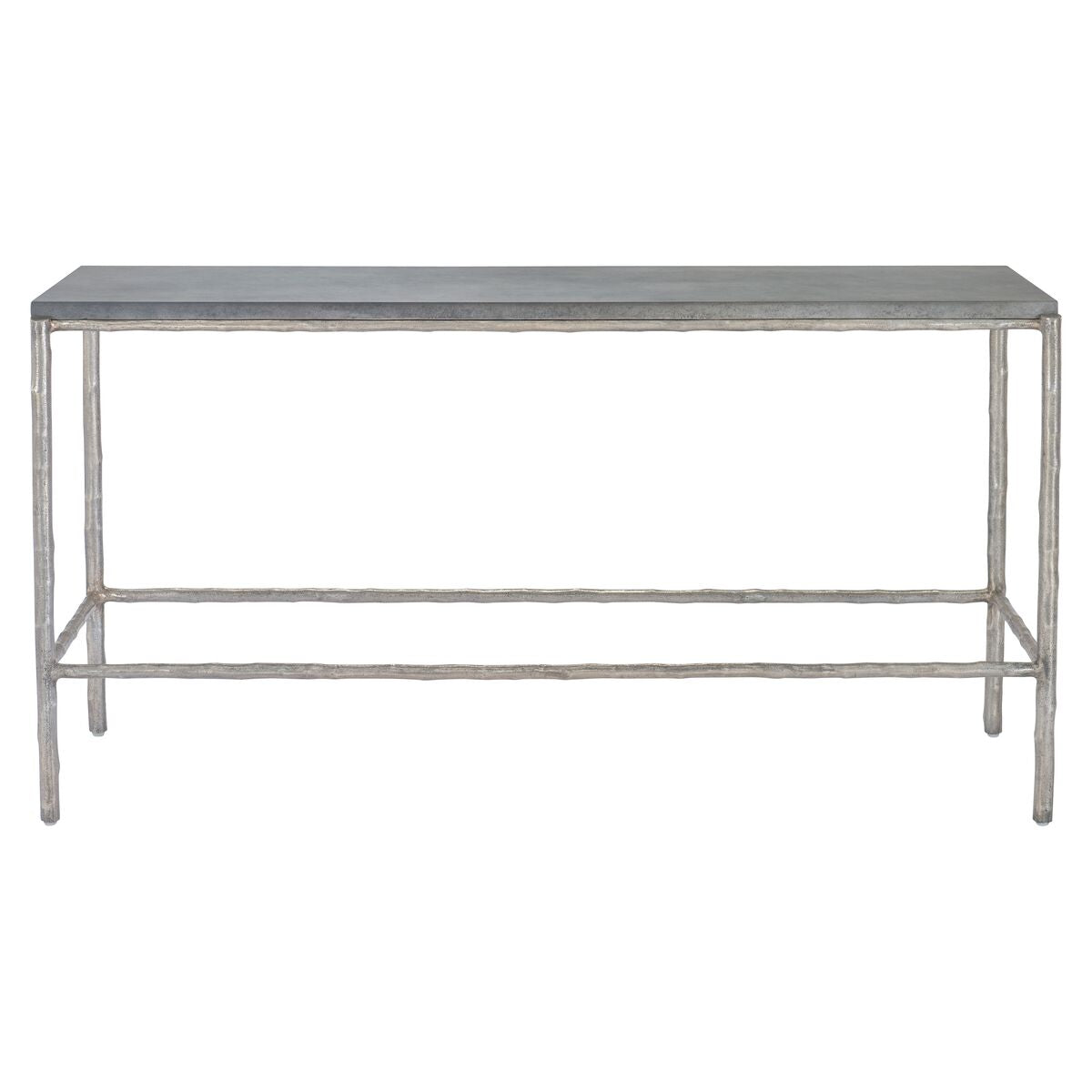 Designed with organic simplicity, the Brisbane console table features a glass-reinforced concrete top resting on a cast aluminum faux bois base. Crafted with inspiration from nature with clean lines and beautiful symmetry, its overall look is one of rustic elegance.