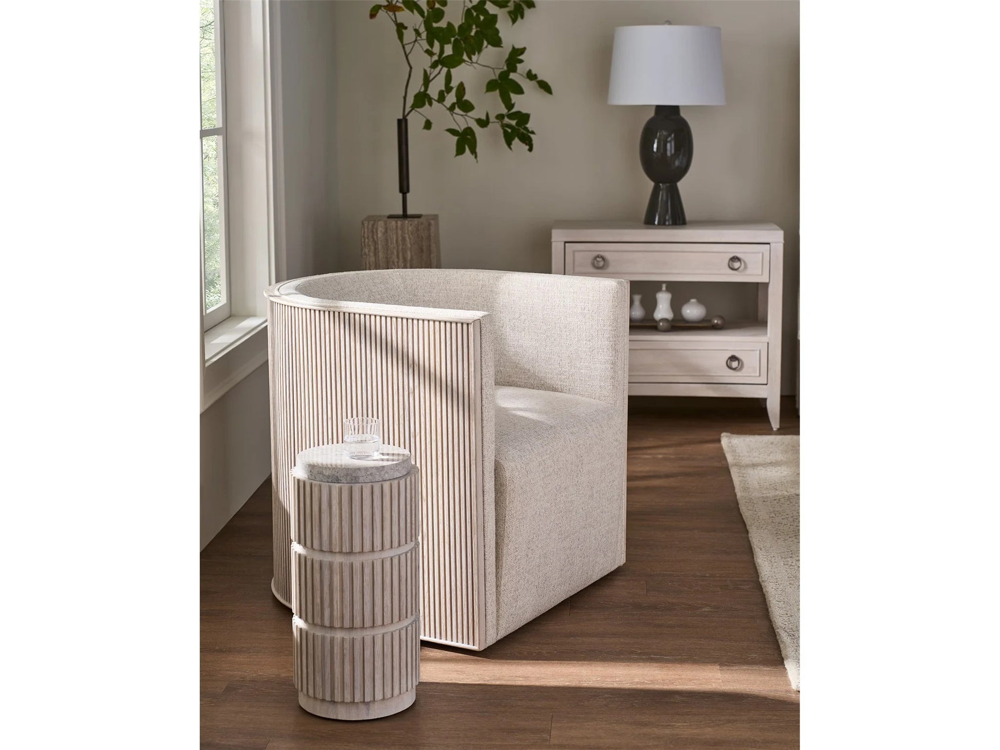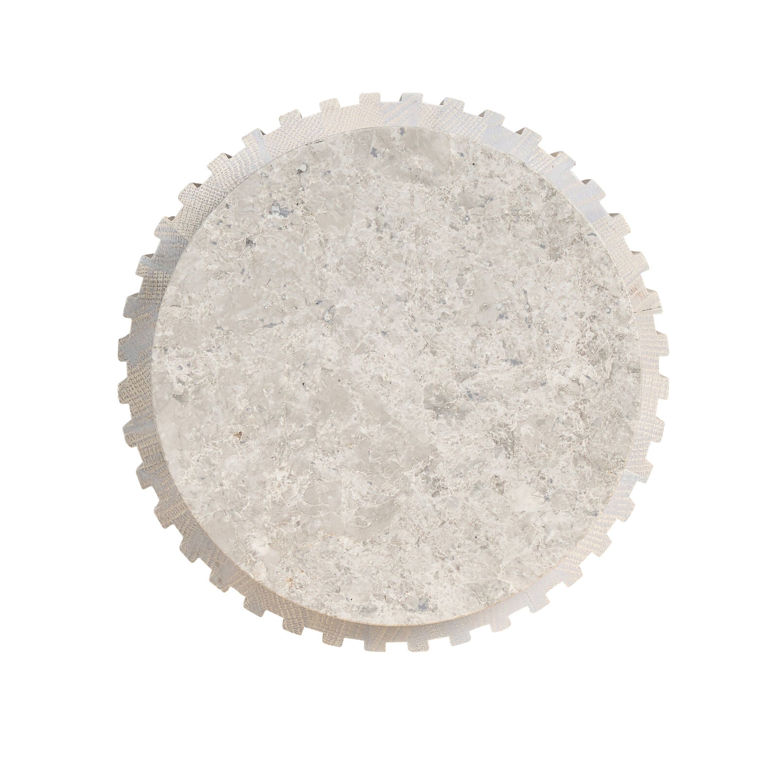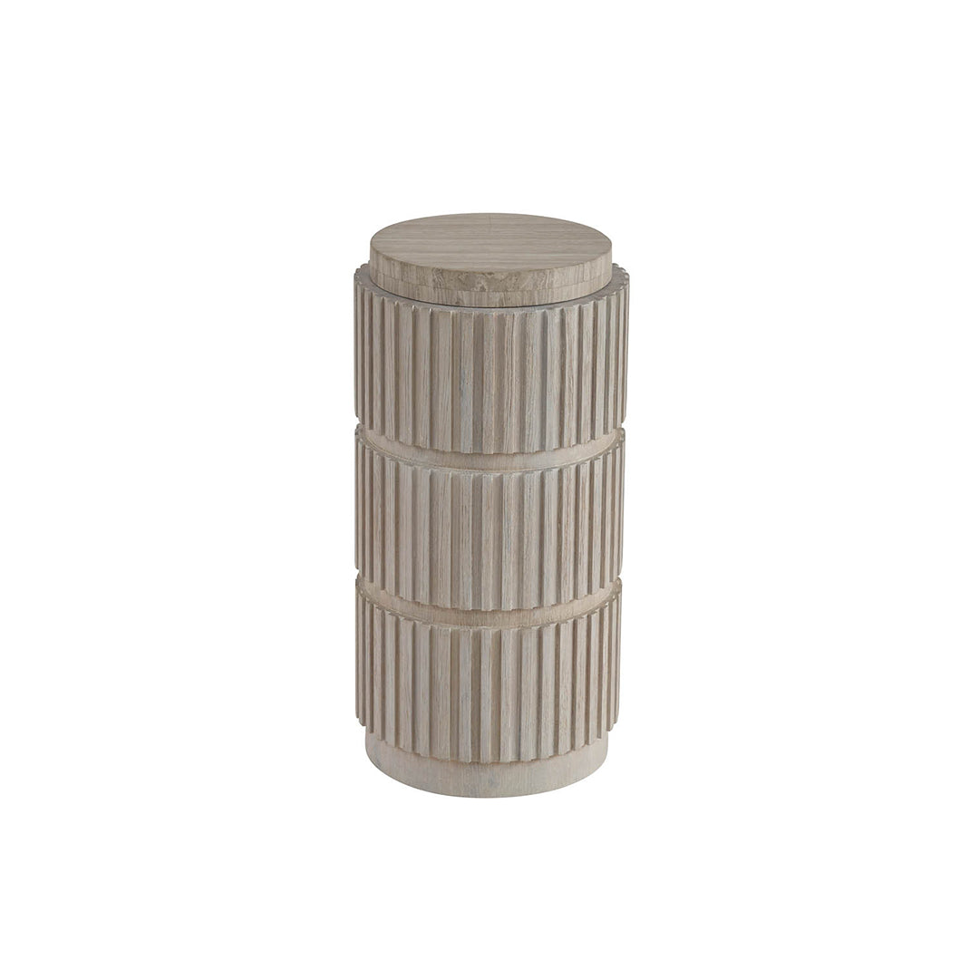 The Carmen Spot Table, a sleek and minimalist design, offers a unique blend of form and function. Its tall, slender silhouette, topped with a smooth stone surface, is perfect for holding a single drink or a small decorative object. The table's distinctive vertical texture adds a touch of elegance, making it a versatile piece for any room.