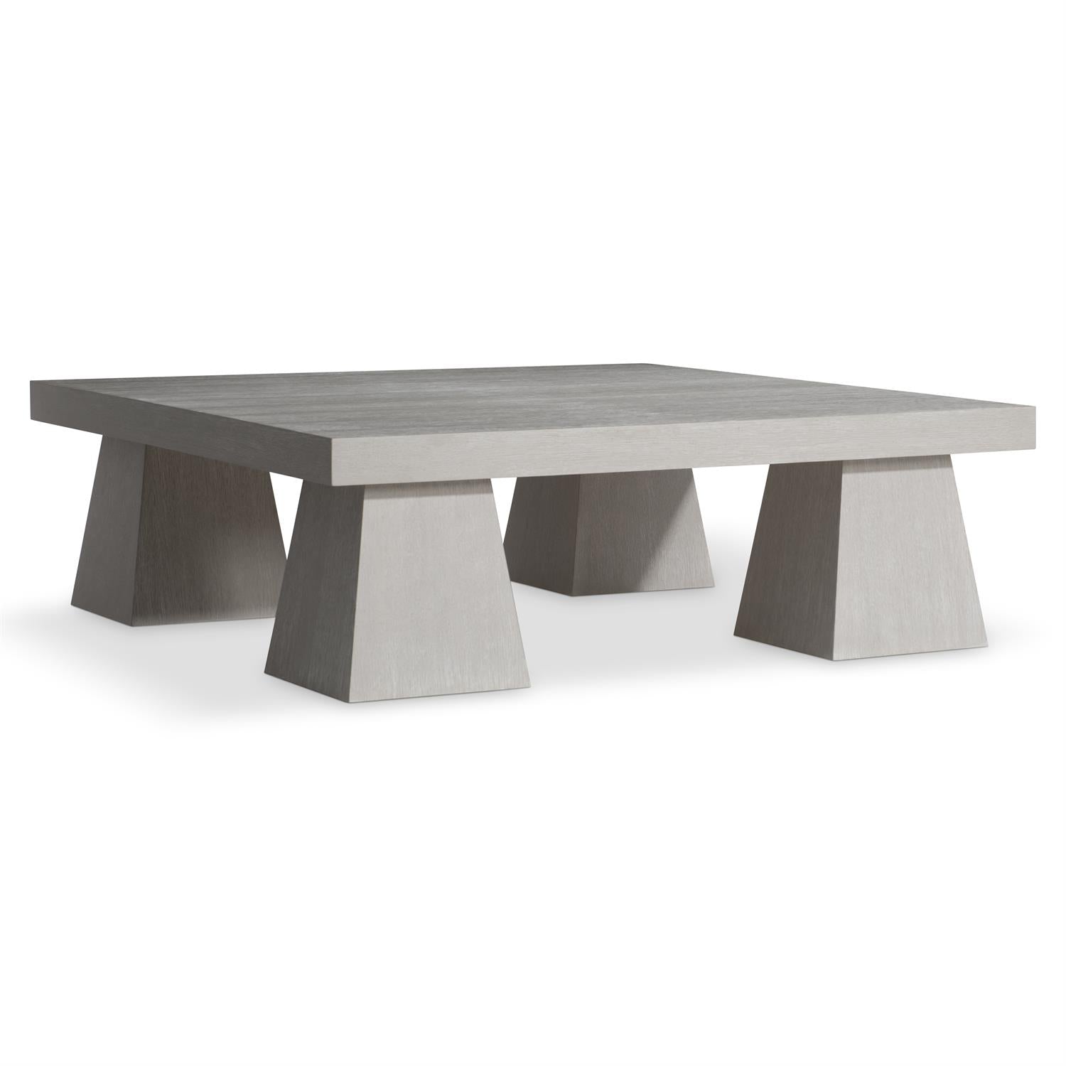 Block legs offer a totemic design for this sleek modern cocktail table.