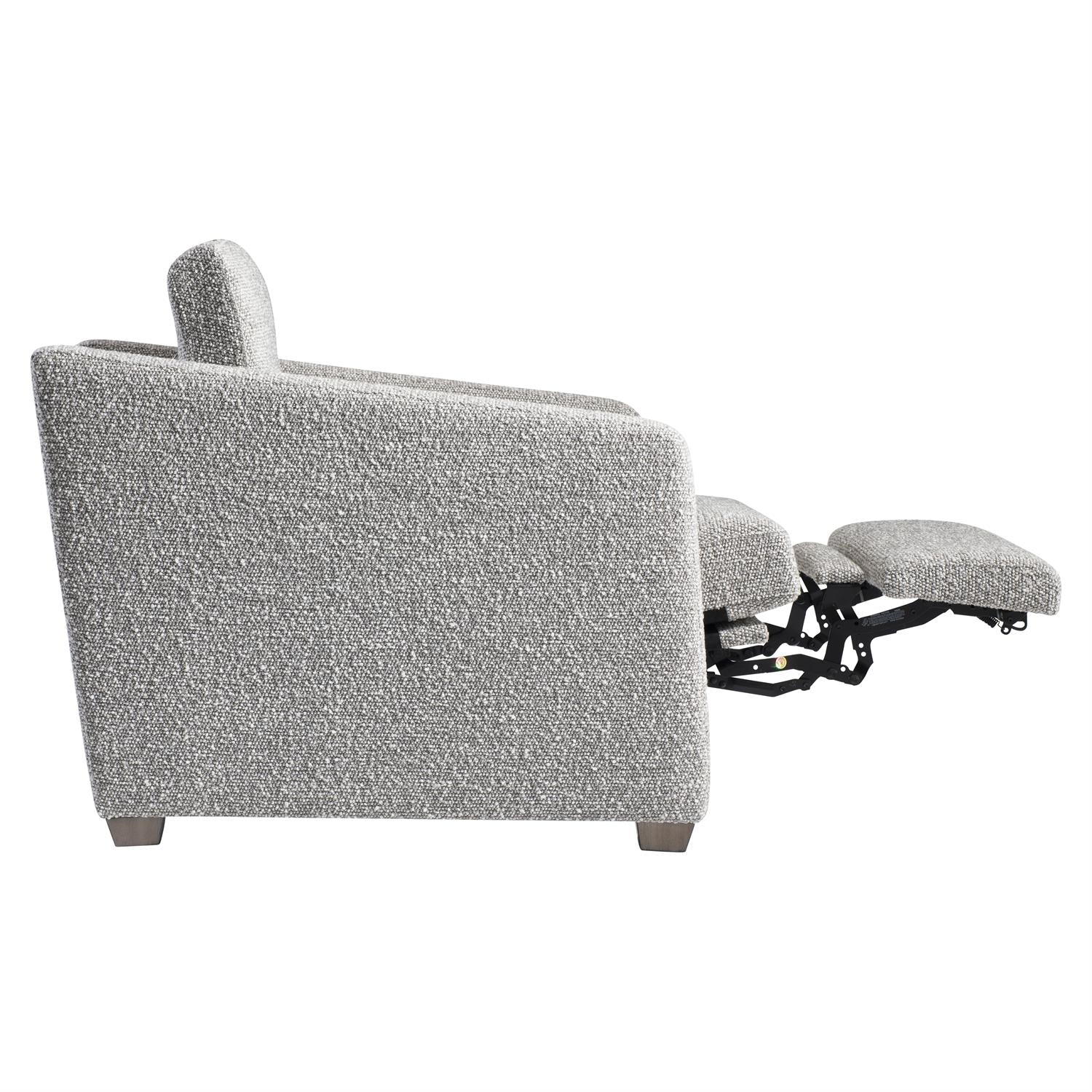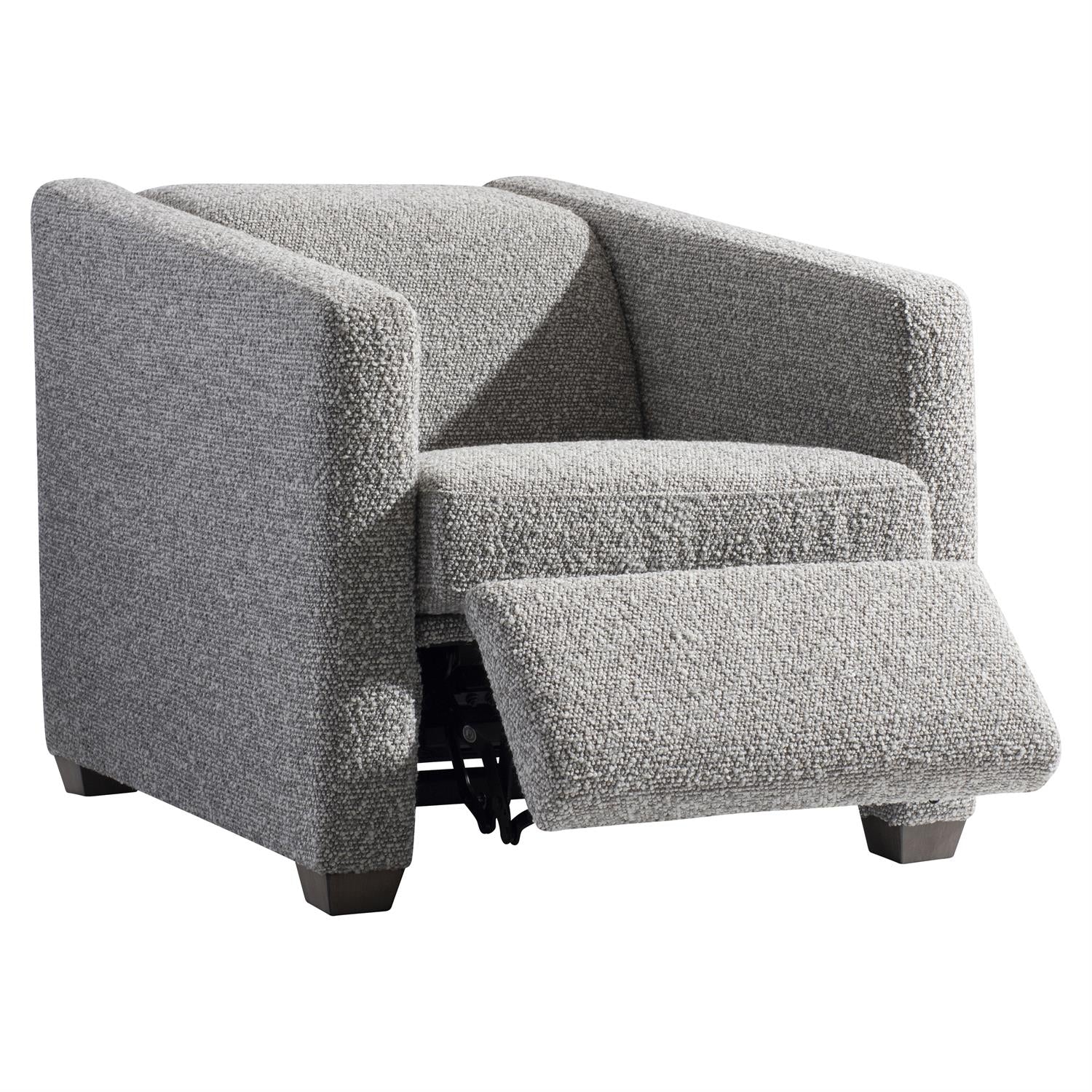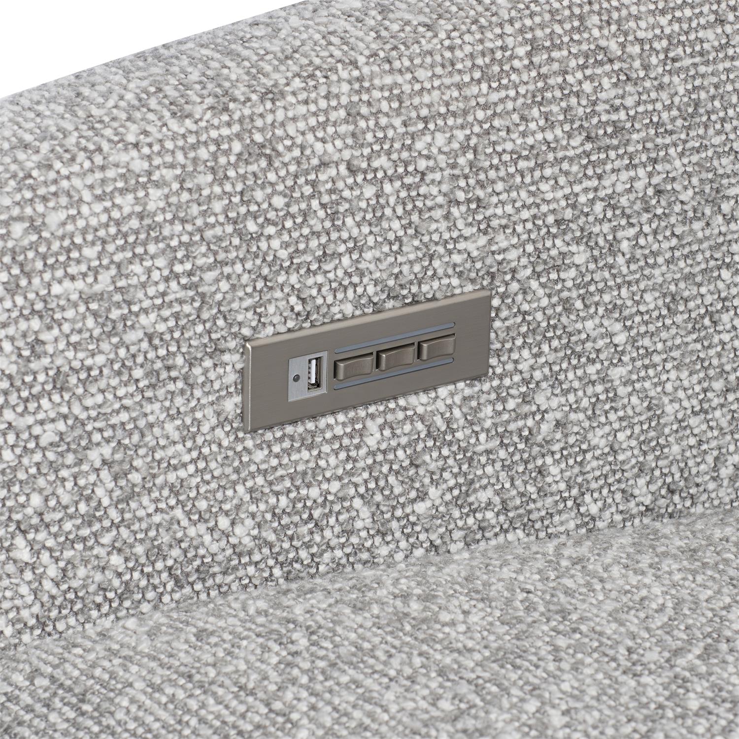 The Cortina fabric power motion chair offers a soft modern design with angled track arms and straight lines. The tailored style is completed with a tight back and a single seat cushion. Controls on the arm, including a USB port, create a smooth recline and move the headrest up for an even more comfortable seat.