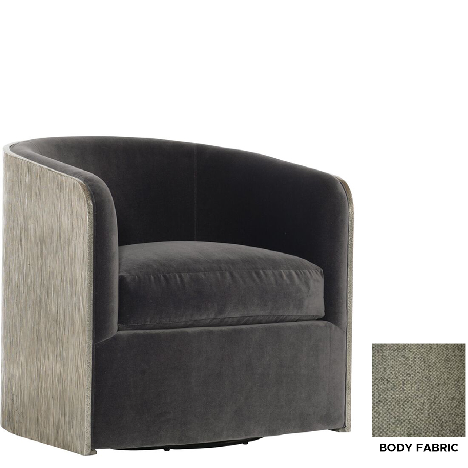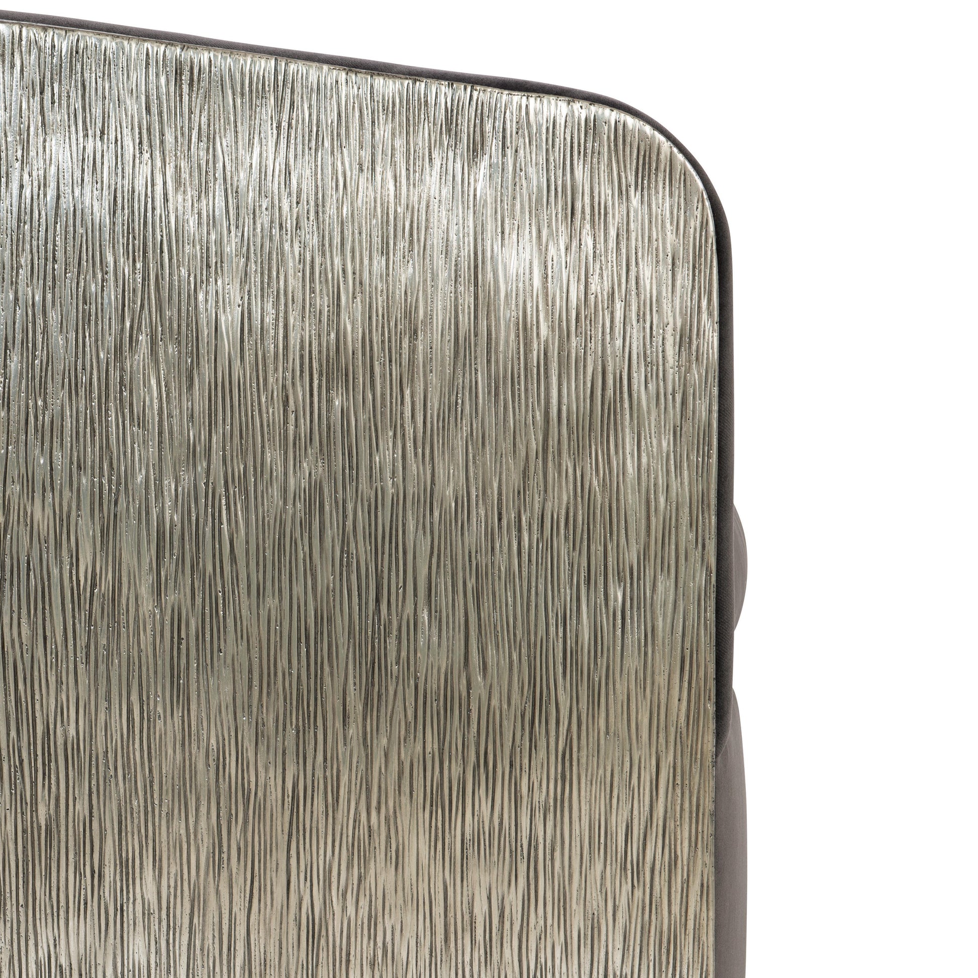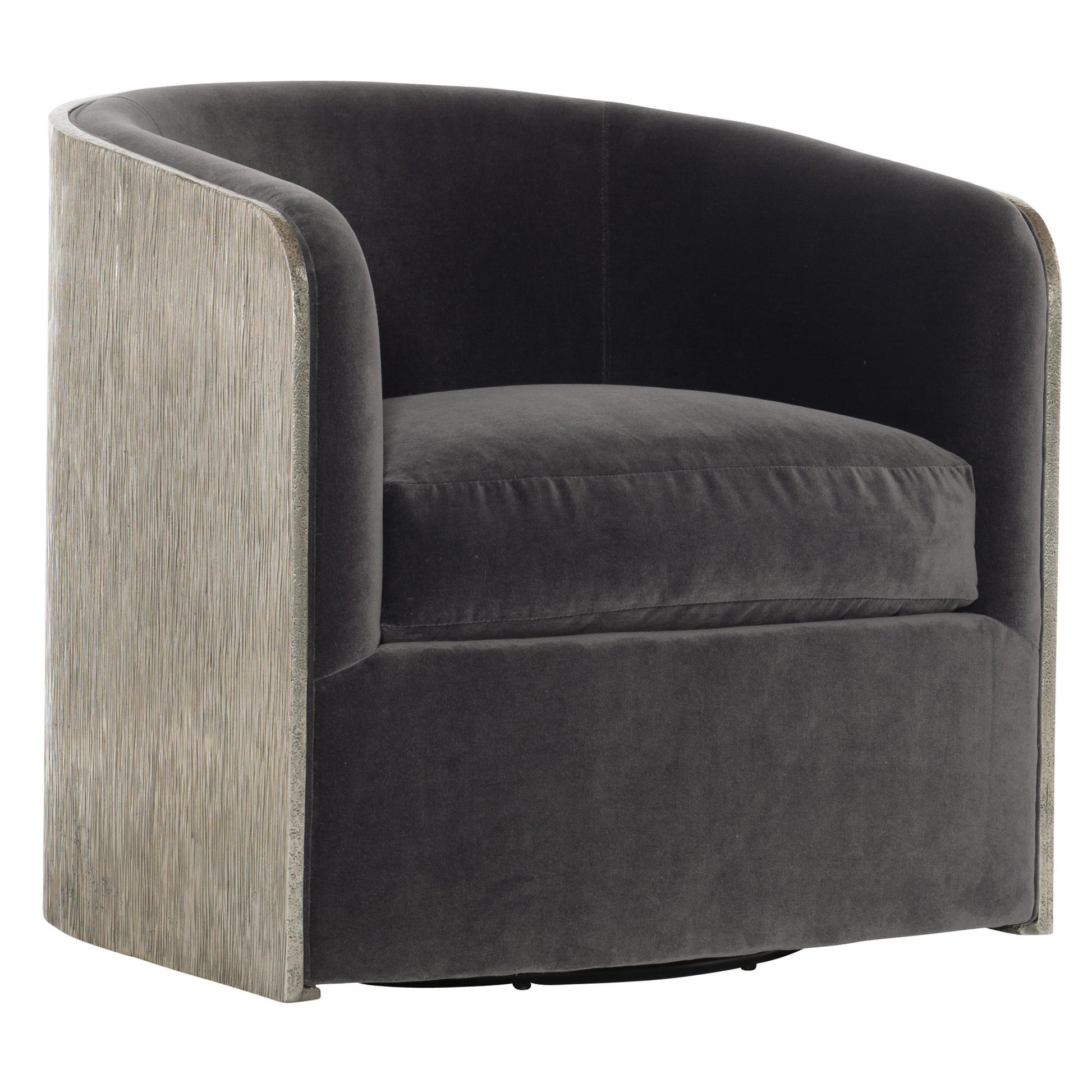 The Eliot swivel chair makes a striking statement with an organic pattern etched into its cast aluminum frame. The metal texture is balanced by an incredibly soft seat and an upholstered front panel. And a smooth base offers a 360-degree swivel.