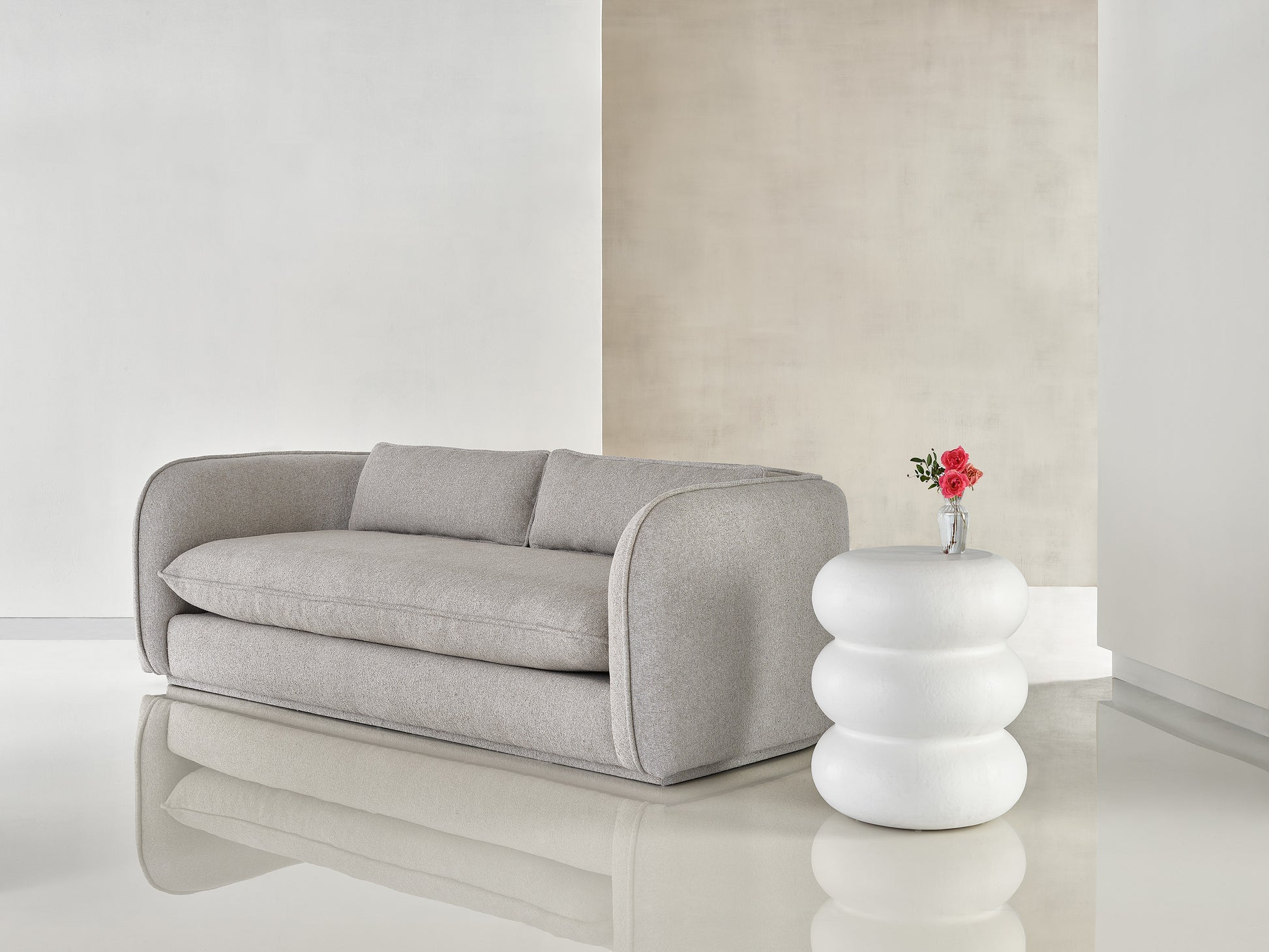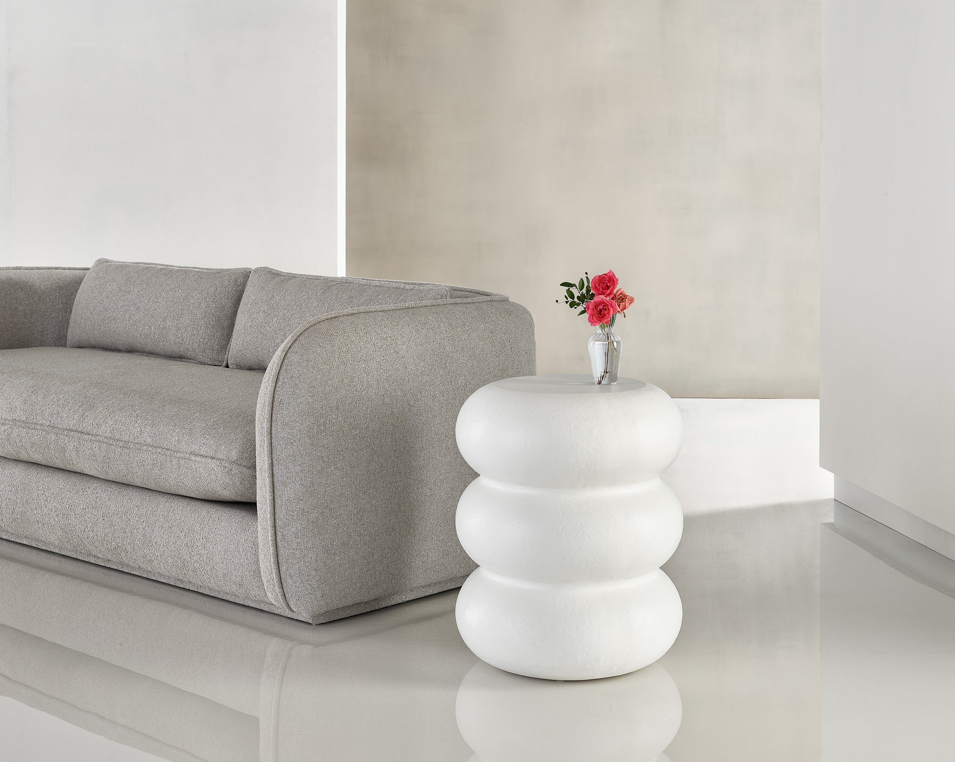 The Enlightenment Side Table captures a chic and modern aesthetic with a fully textured white body carved in a geometrically-inspired silhouette.