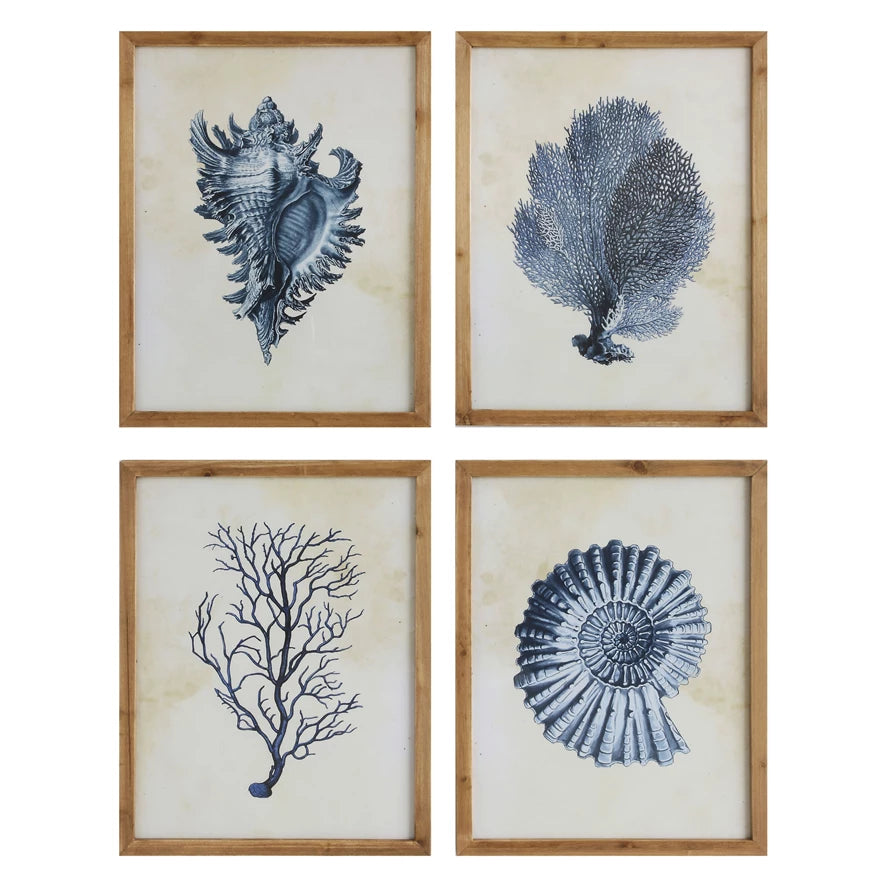 Fir Framed Wall Art with Coral and Shells Image, Indigo and White, 4 Styles