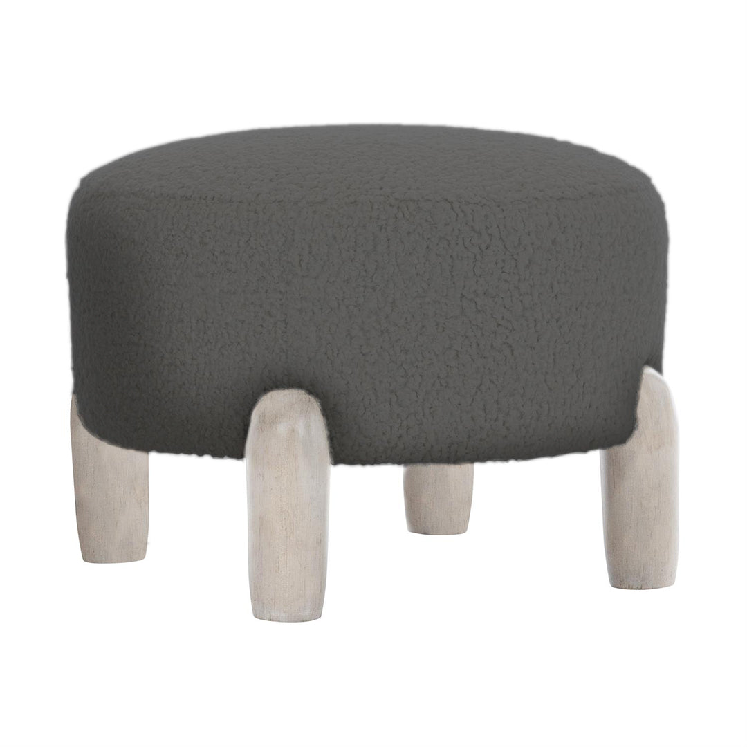 Boldly proportioned round wood legs and luxurious fabric function together seamlessly on this versatile ottoman.