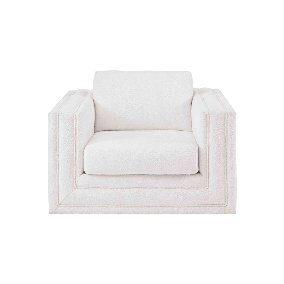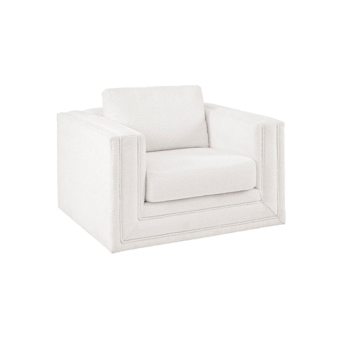 This lounge chair is fully upholstered from floor to top, beautifully highlighting its meticulous rows of welting.