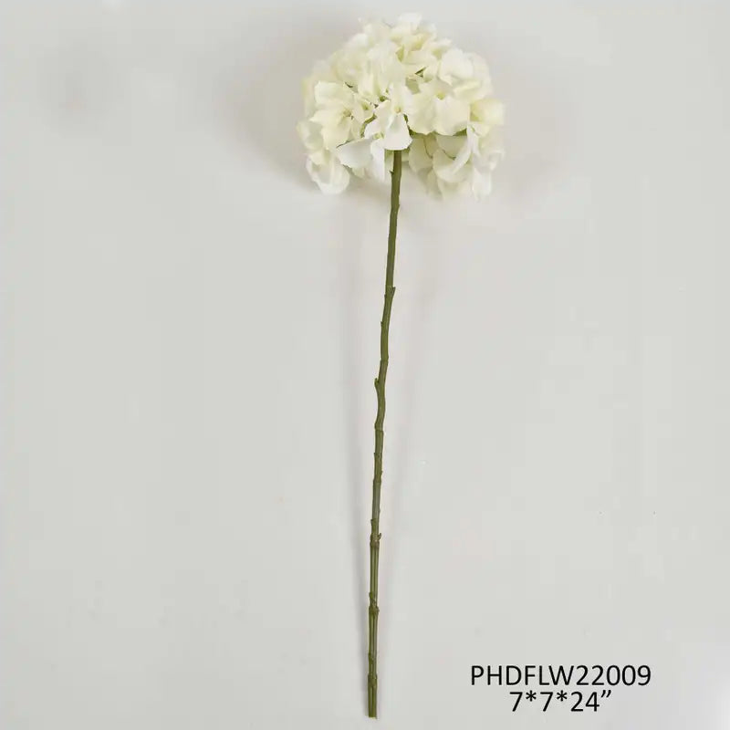 This fabric crafted hydrangea is hand-dyed to resemble the rich white color of seasonal garden hydrangeas.