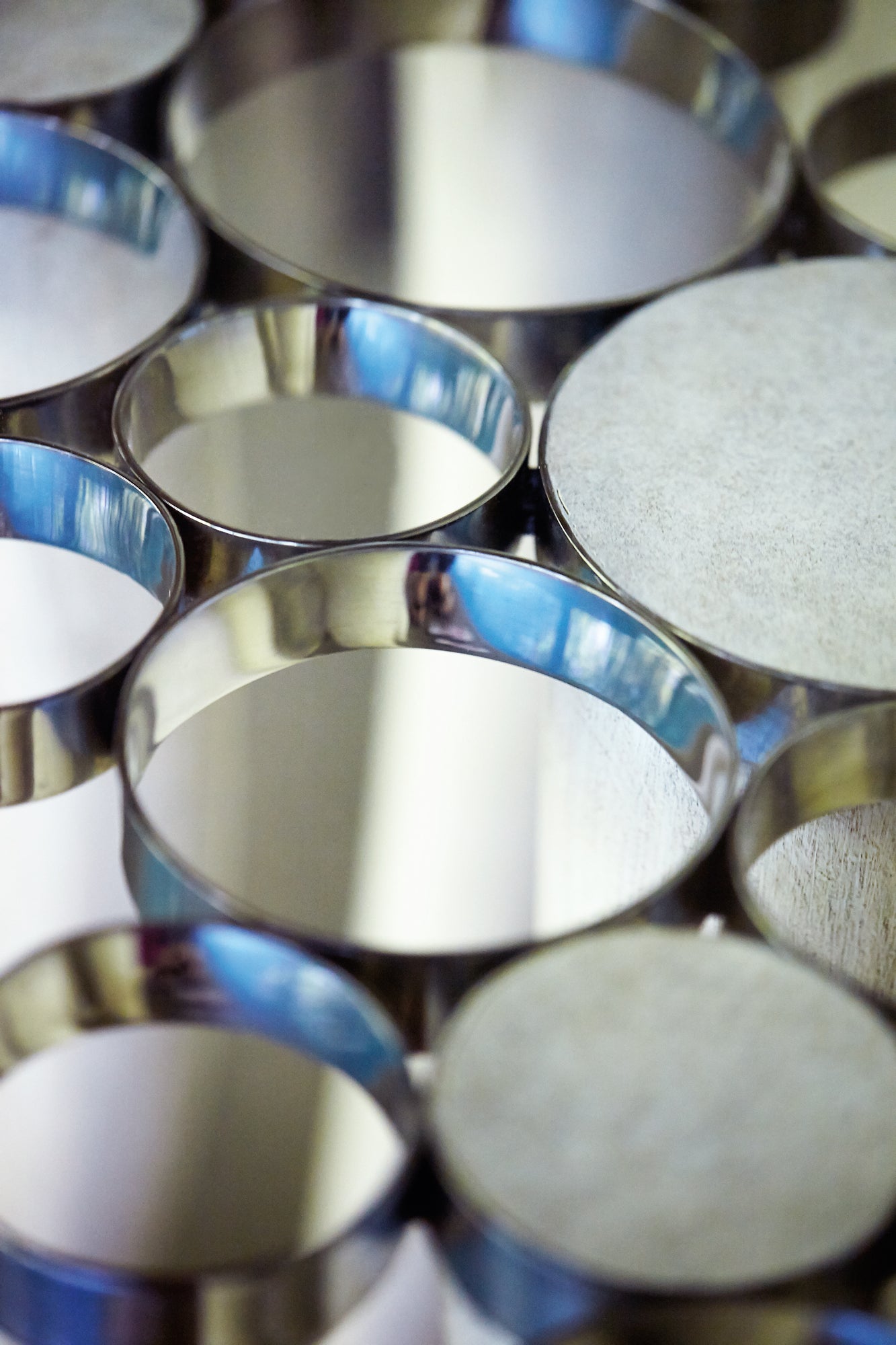 - Stainless steel top frame with steel reinforced cast resin tusk shaped legs.