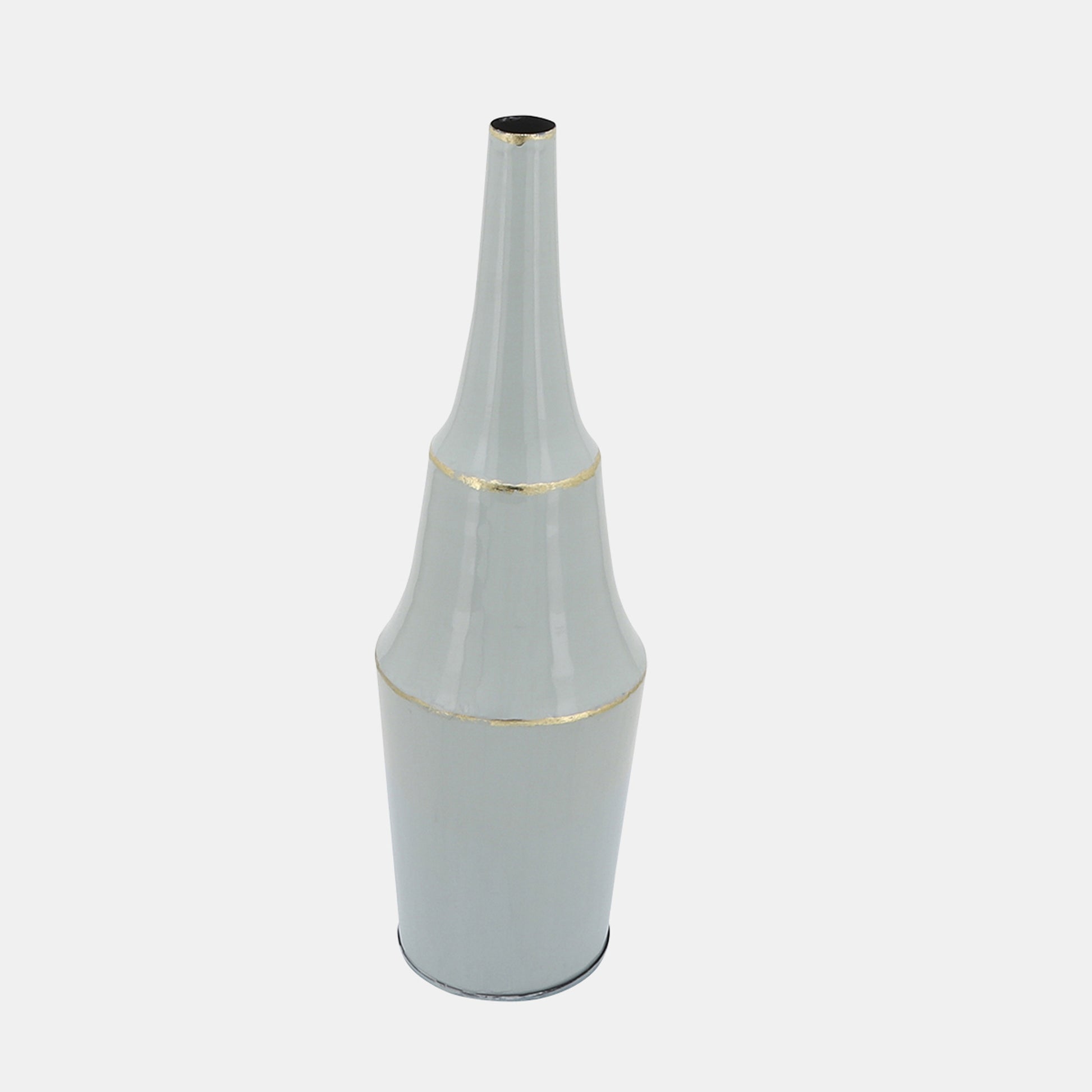 METAL, 27"H VASE W/ GOLD TRIMS, GRAY