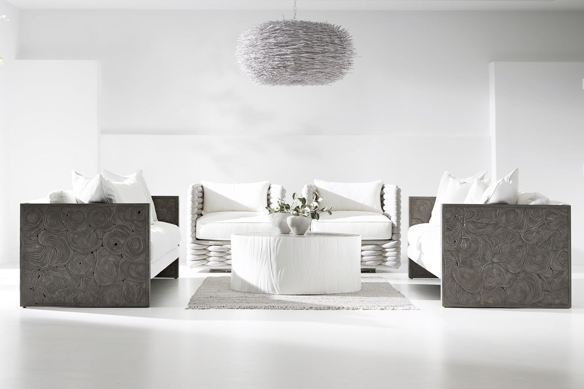 The Madura sofa in solid teak will lend a natural presence to any outdoor setting. Designed with exterior wood-grade materials, this gorgeous sofa has plush cushions for entertaining and relaxing.