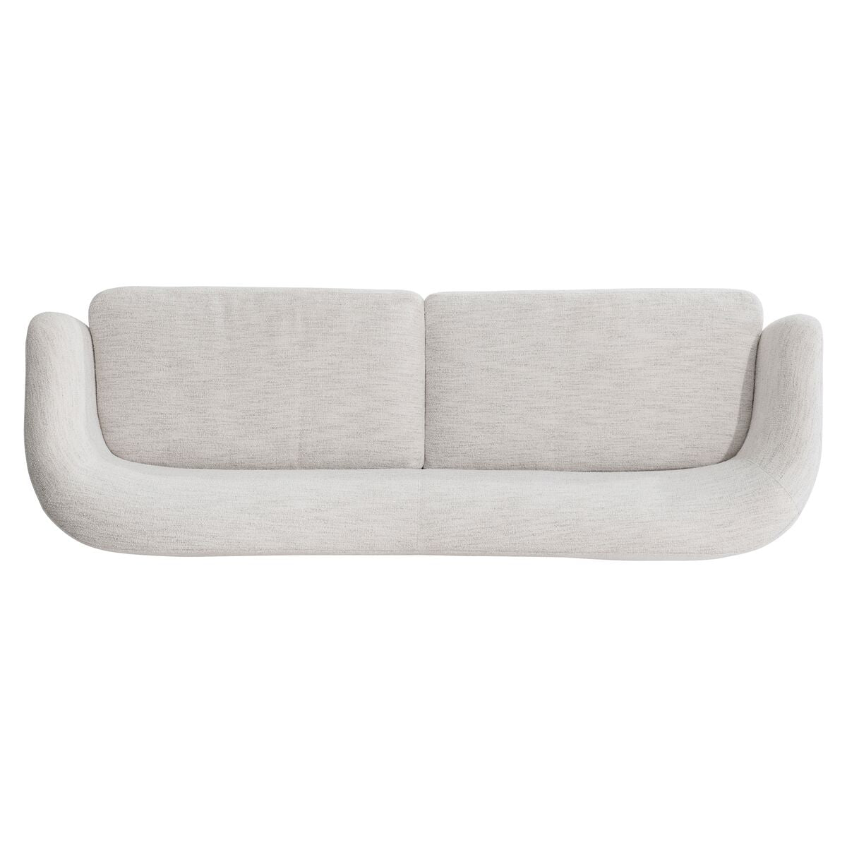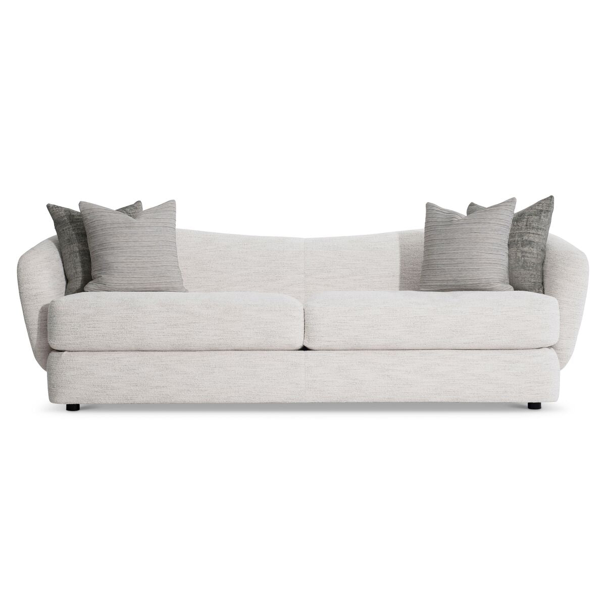 The back of the Margot sofa curves to create embracing shelter arms for a comforting design. Two deep seat cushions and tight back upholstery offer tailored details. Two complementary throw pillows and round feet complete the modern styling.