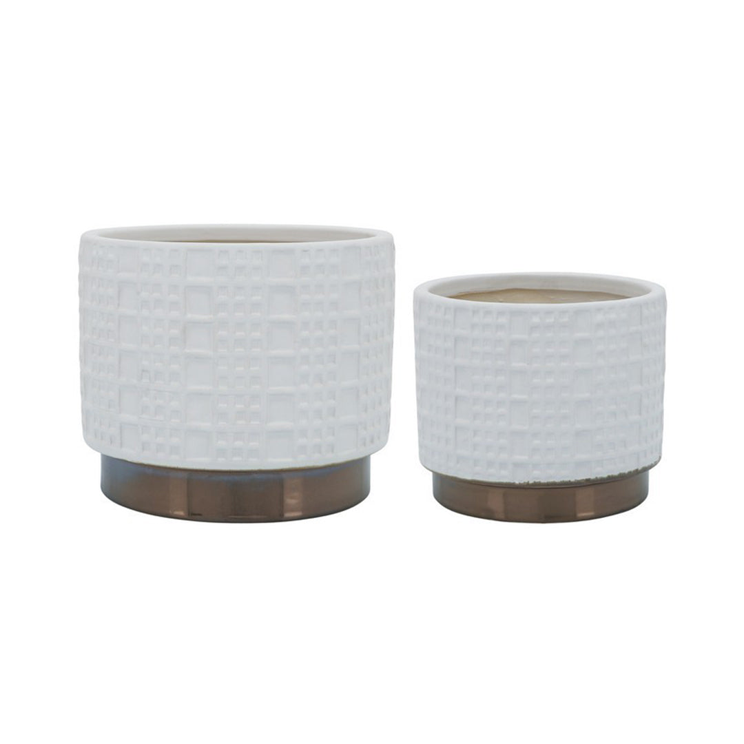 S/2 MESH METALLIC PLANTERS 6/8", WHITE
