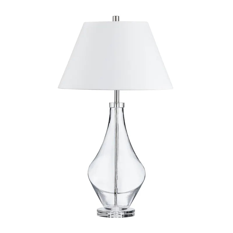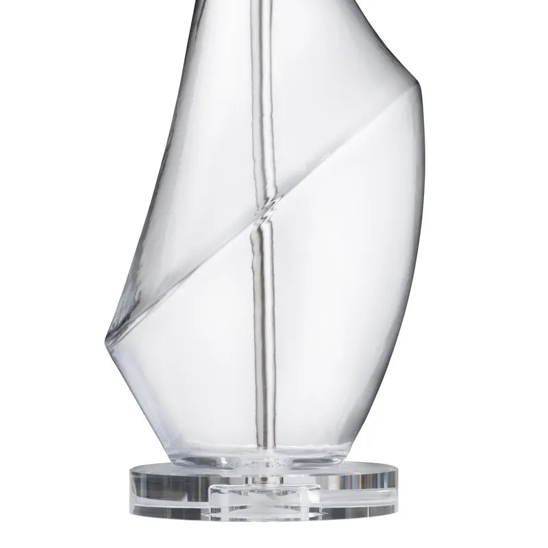 The transparent glass of the Neville Table Lamp gives a neutrality to the sculptural base that makes it the perfect compliment for transitional décor. Its white linen empire shade makes it current and stylish.