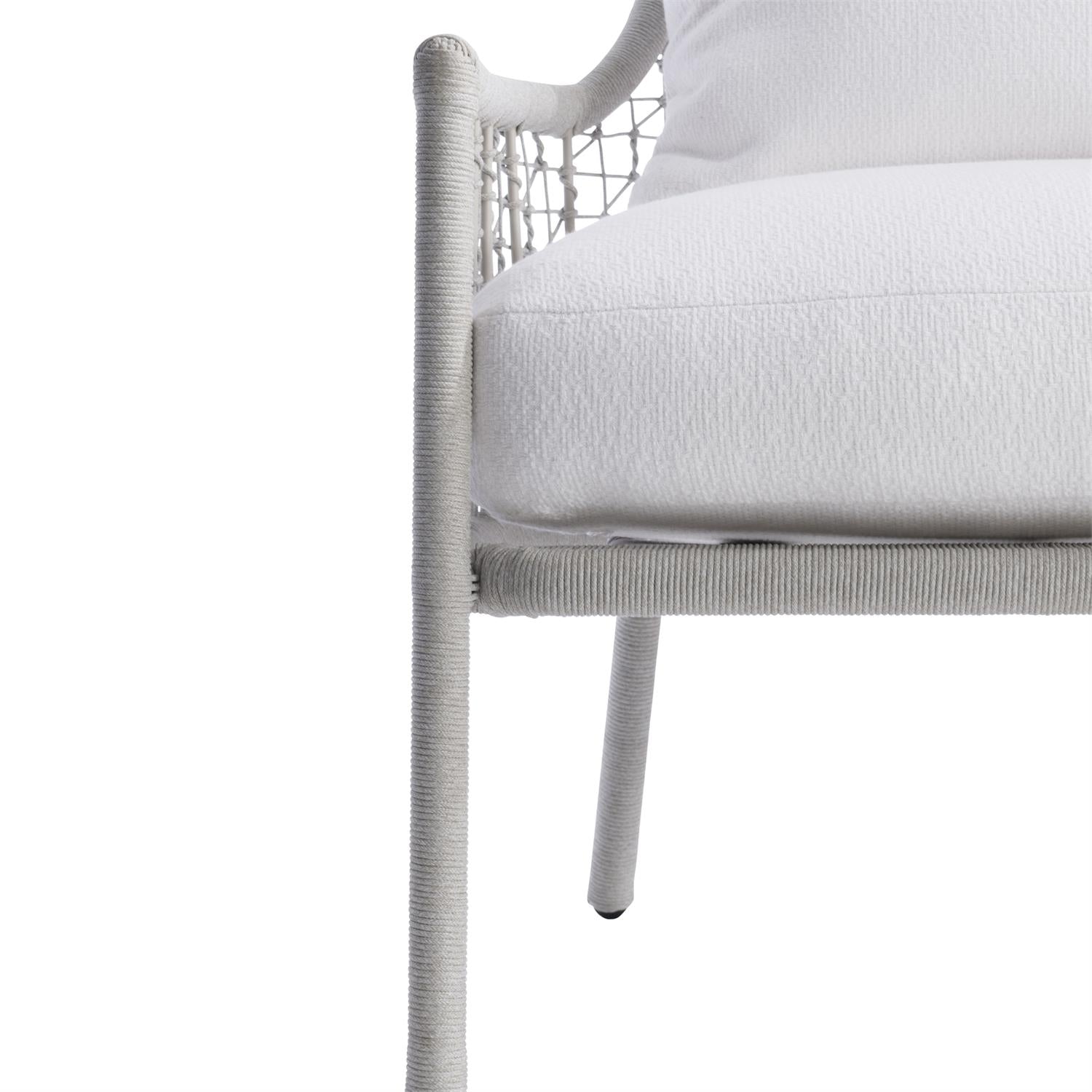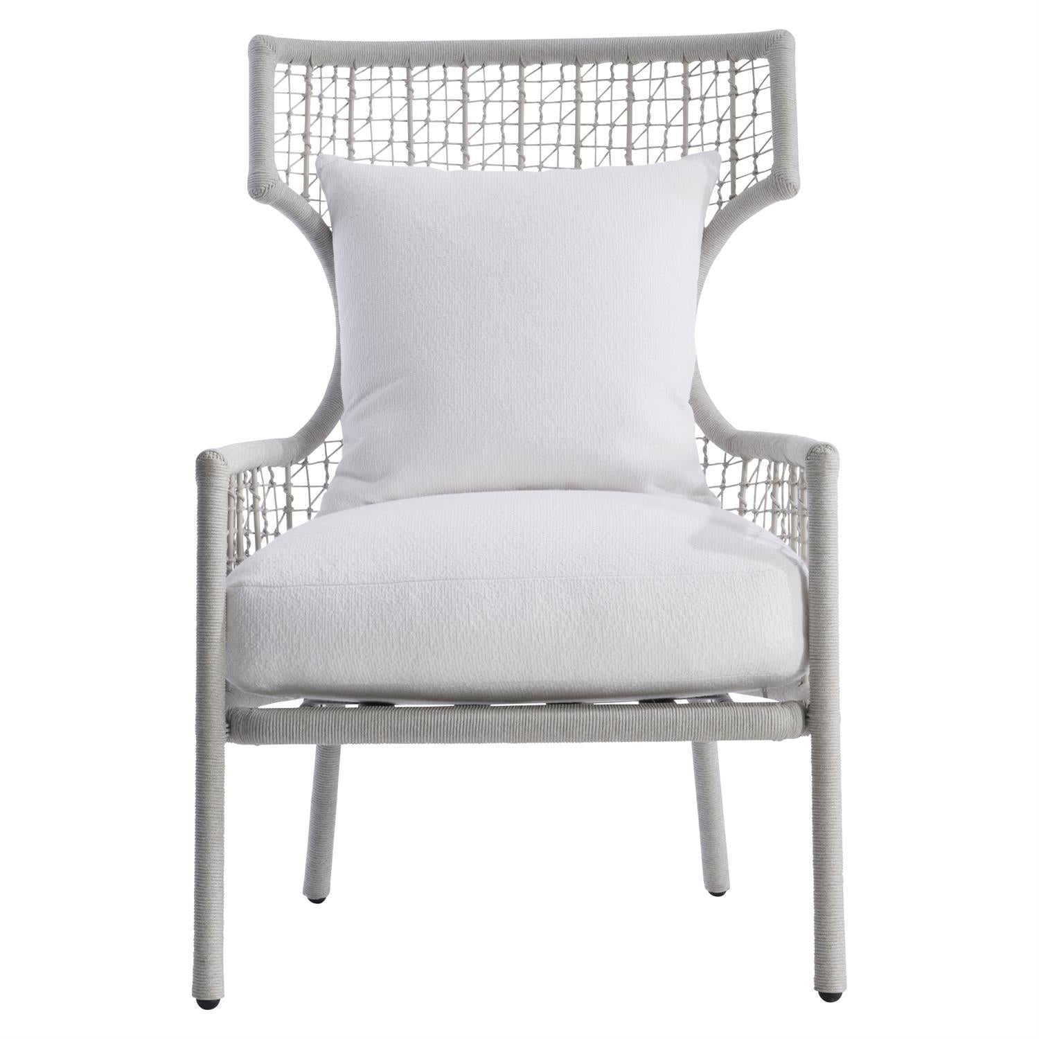 Striking design comes from an open weave crafted of twisted rope in Driftwood finish on the Paloma outdoor chair. But the pattern isn't just about style; it also provides a comfortable frame for outdoor lounging, with a deep seat cushion and a back pillow. Woven over an aluminum base, this wingback design is made for the outdoors but is beautiful enough for interiors.