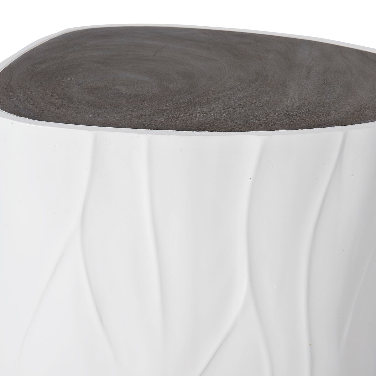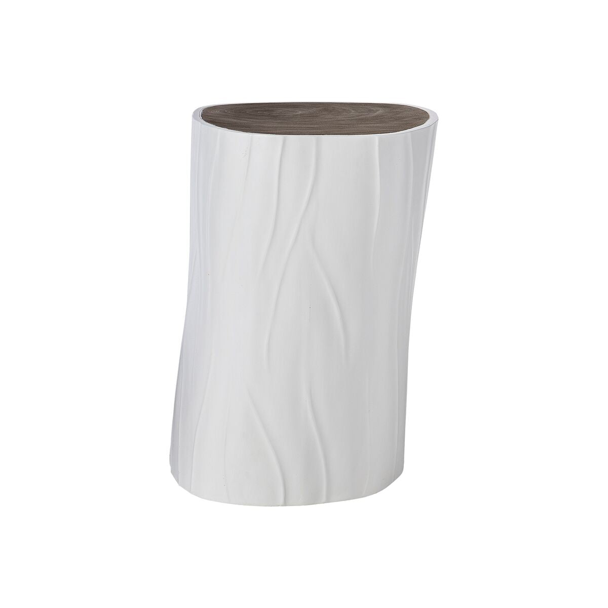 Cast resin creates a beautifully organic faux bois look in the Paseo accent table.