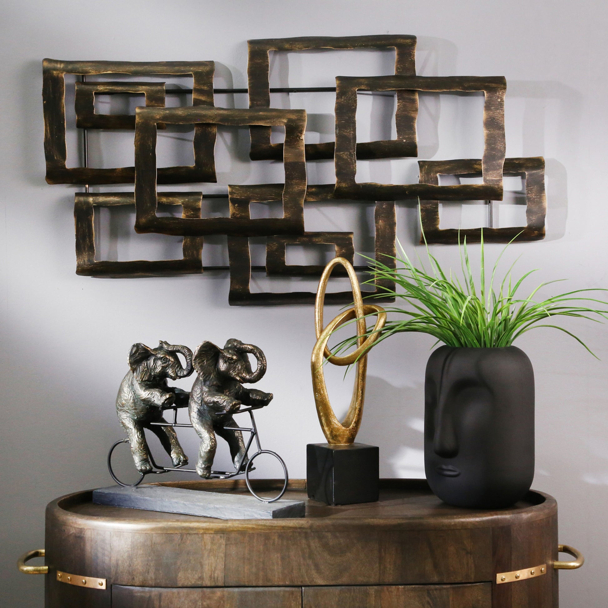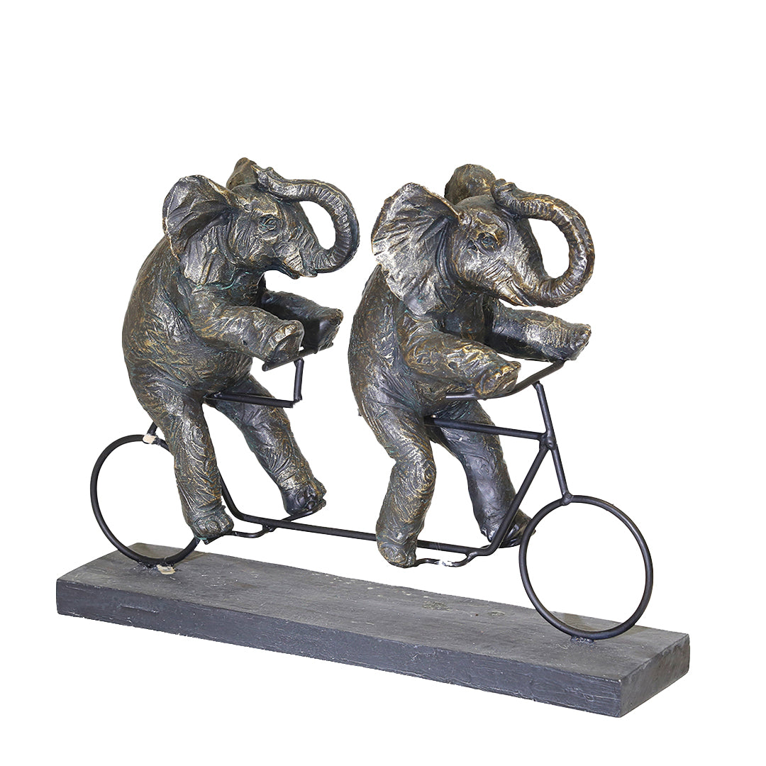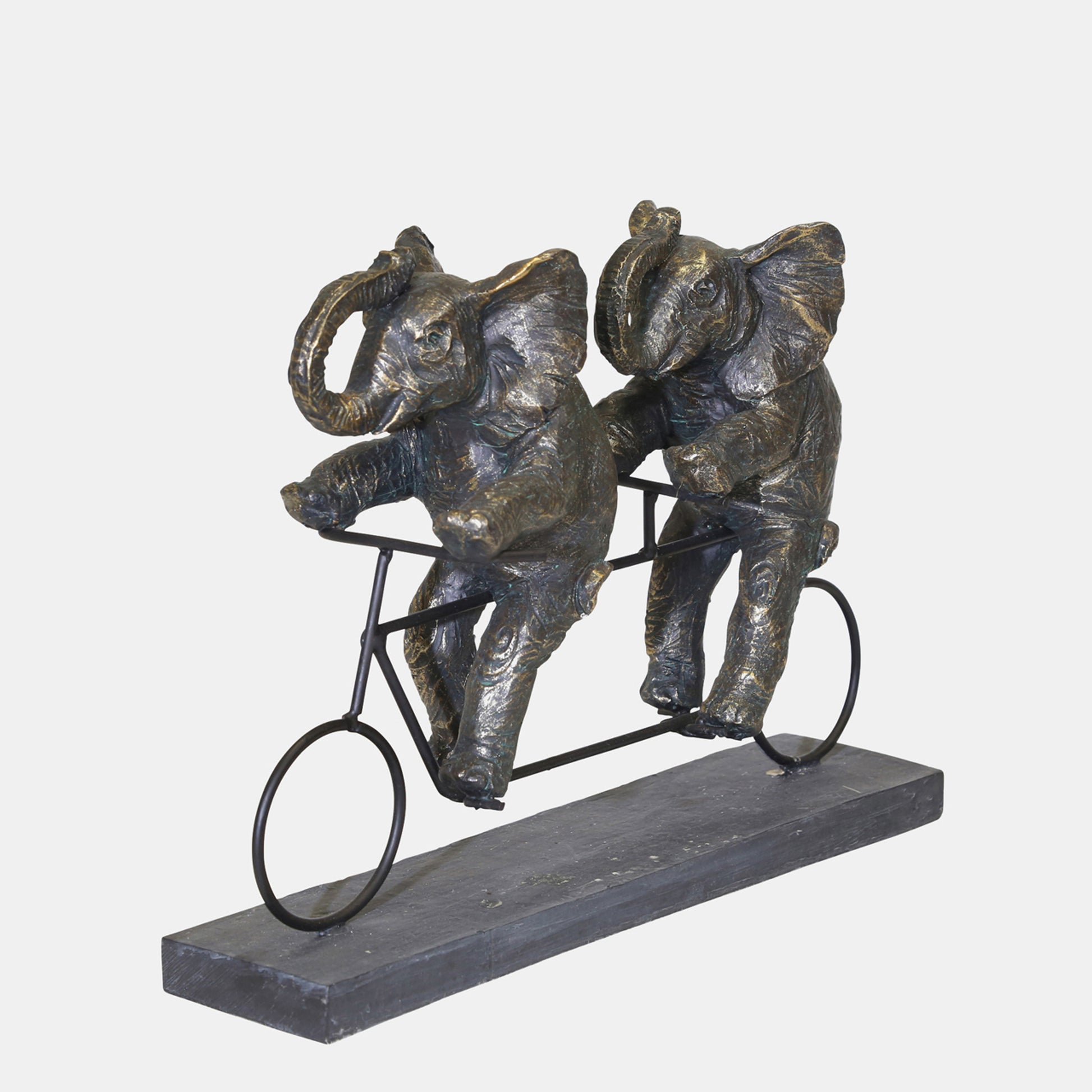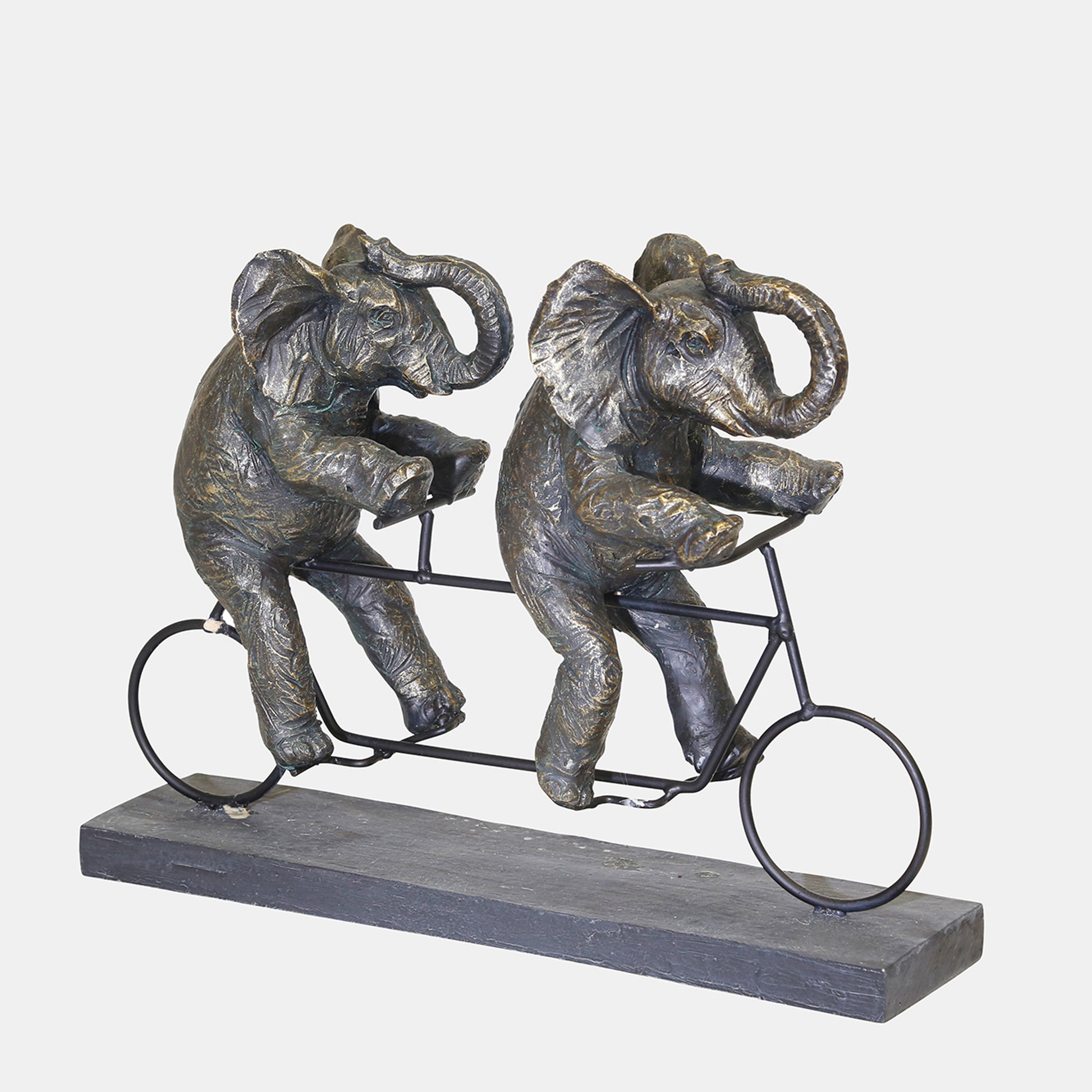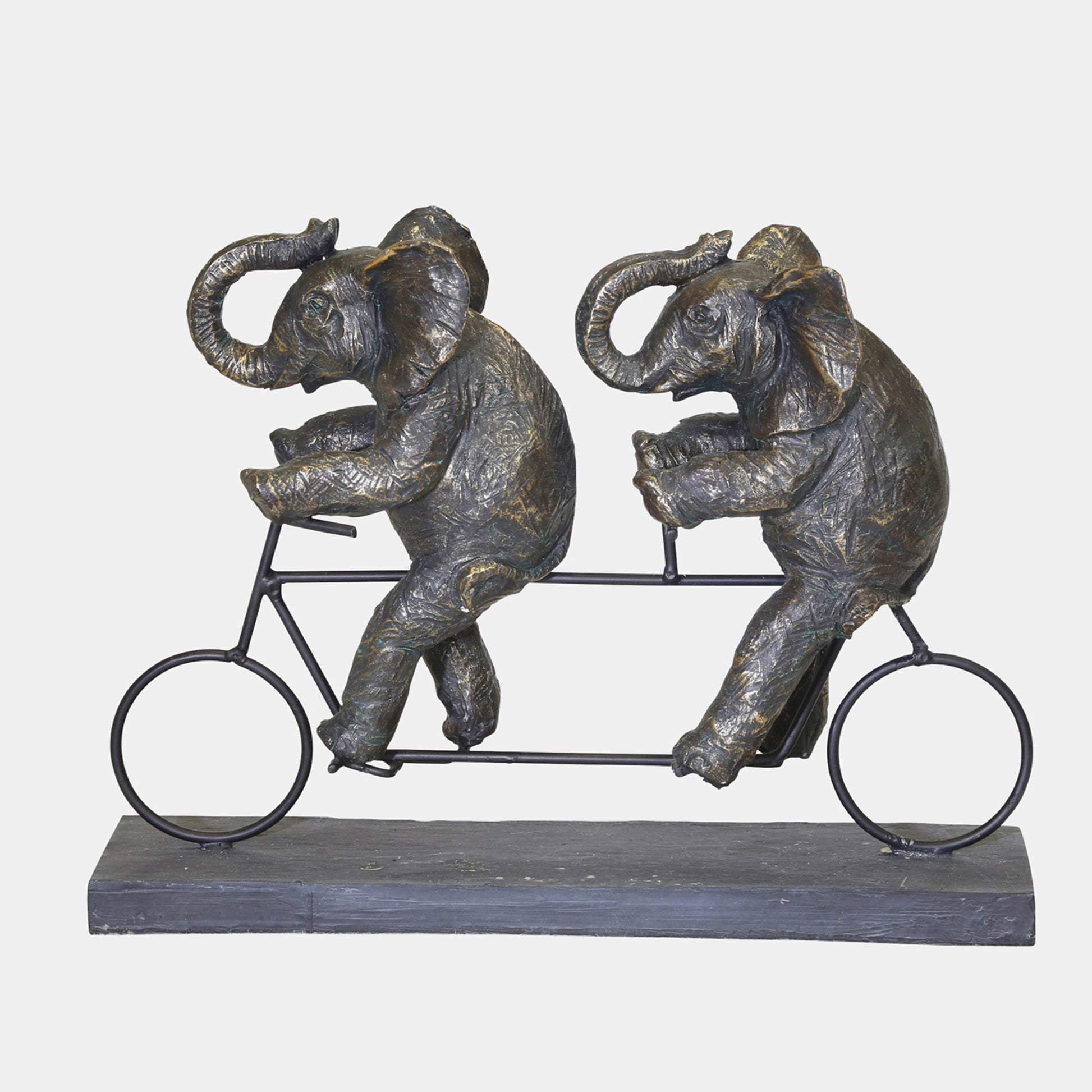 Adorn your space with the M Décore Polyresin 14" Elephants On Tandem Bike in Bronze.