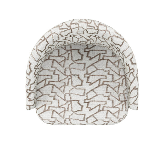 Make a splash in a monochromatic palette with this abstract patterned upholstered barrel chair. A gently curved back is as stylish as it is supportive, and and creates and overlay effect with the base of the chair. Bold and eye-catching, this chair adds a touch of couture style to any room.