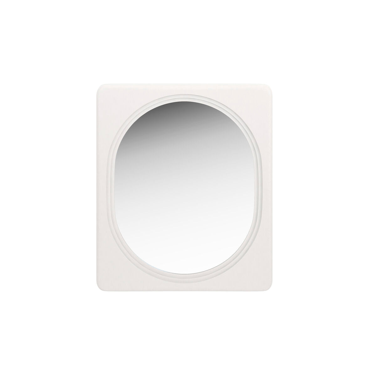 Gaze into this sleek mirror and let its intriguing layered edges pull you in further. The modern square resin frame is finished in white and softened by subtly rounded edges surrounding oval glass. Whether hung on the wall or mounted on a dresser, this mirror is sure to reflect well on its surroundings.