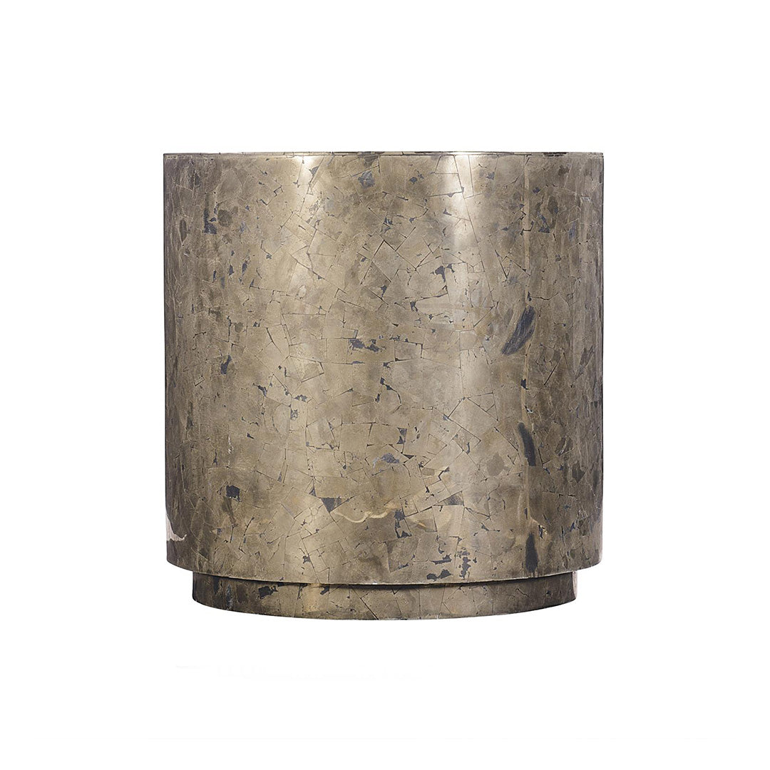 Crafted from the glittering mineral, pyrite, this accent table brings a room alive with a rich, shimmery aesthetic.