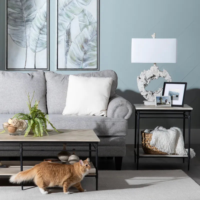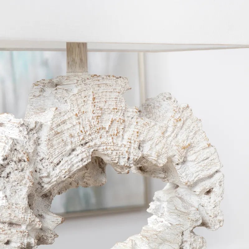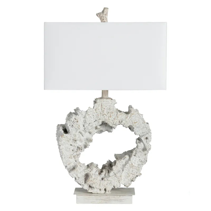 Resin cast directly from a piece of driftwood has plenty of earthy and organic texture. It is hand-finished in a weathered white that further enhances the found object feel of this unusual lamp. Styled on a console or end table, the Rowan Table Lamp is sure to draw attention.