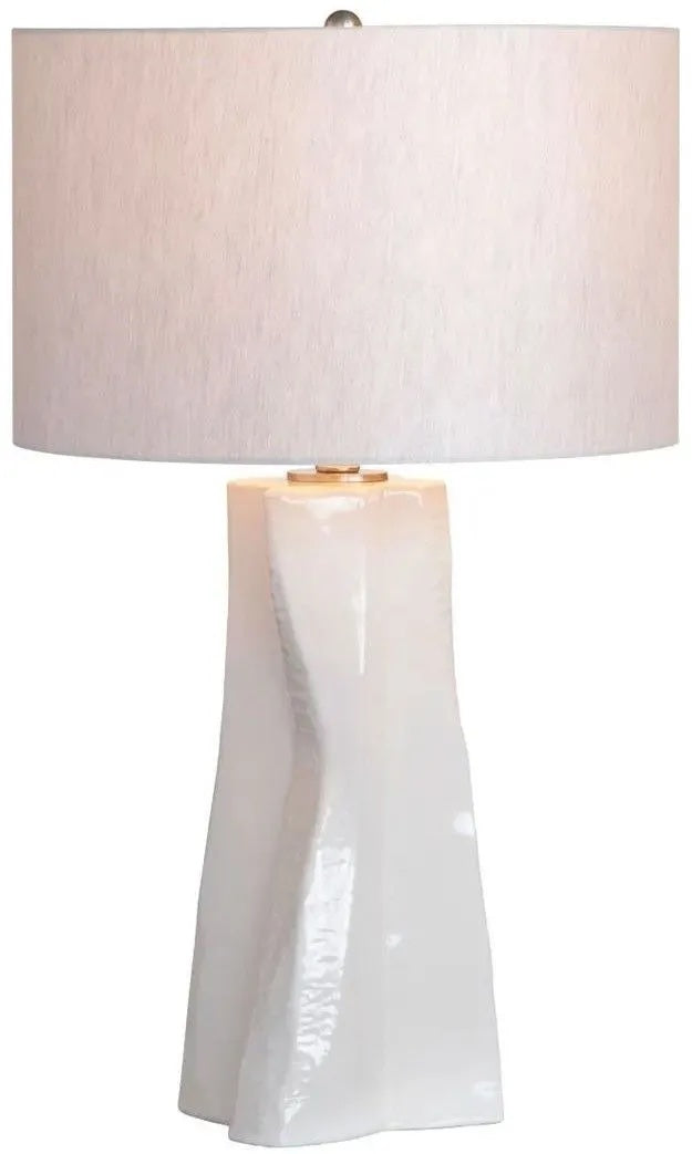 This table lamp will look beautiful in any room of your transitional style home or office decor. The base has four sides with a raised ridge separating each side, giving it a unique shape almost like a squash blossom with the wider part of the base being at the bottom to stabilize the fixture.