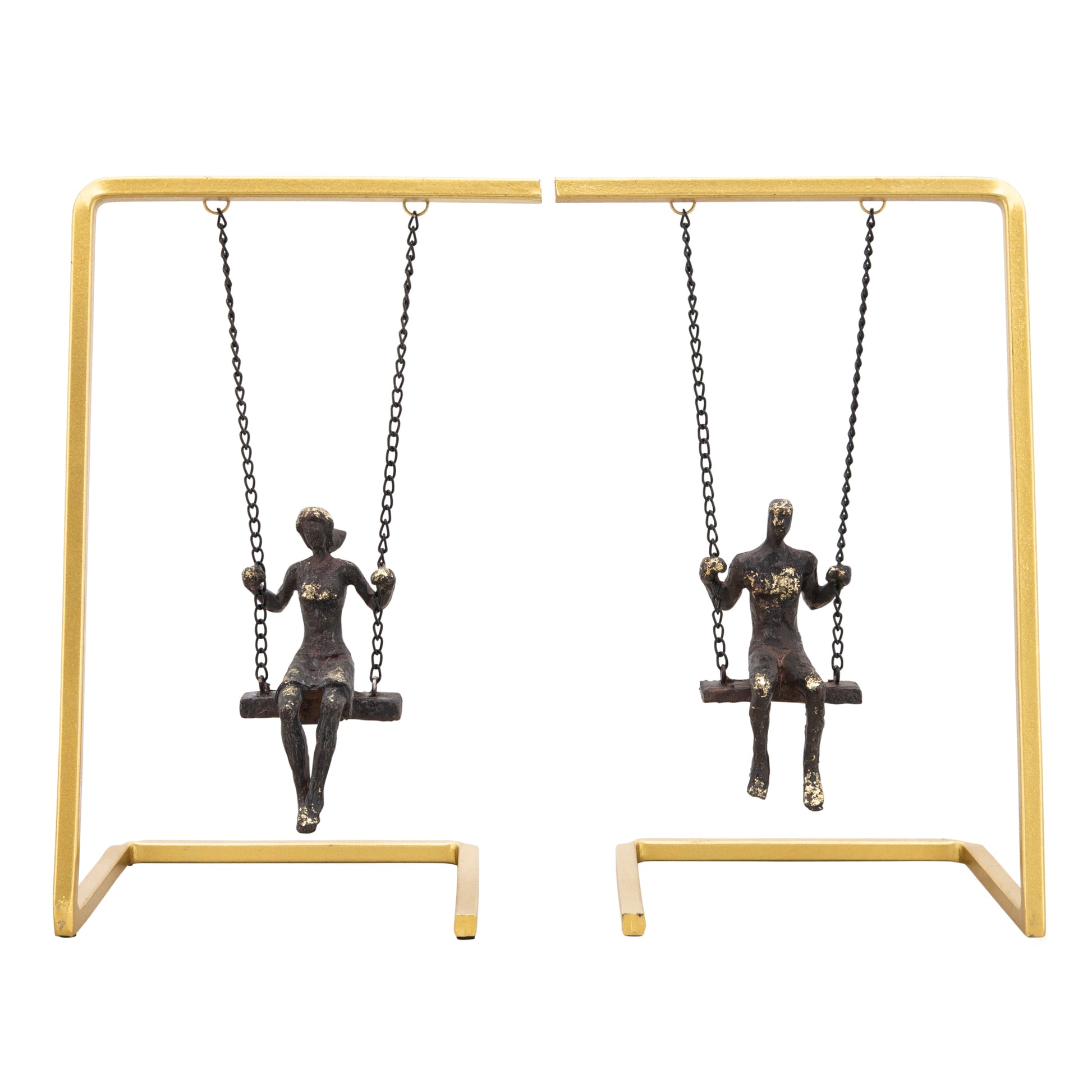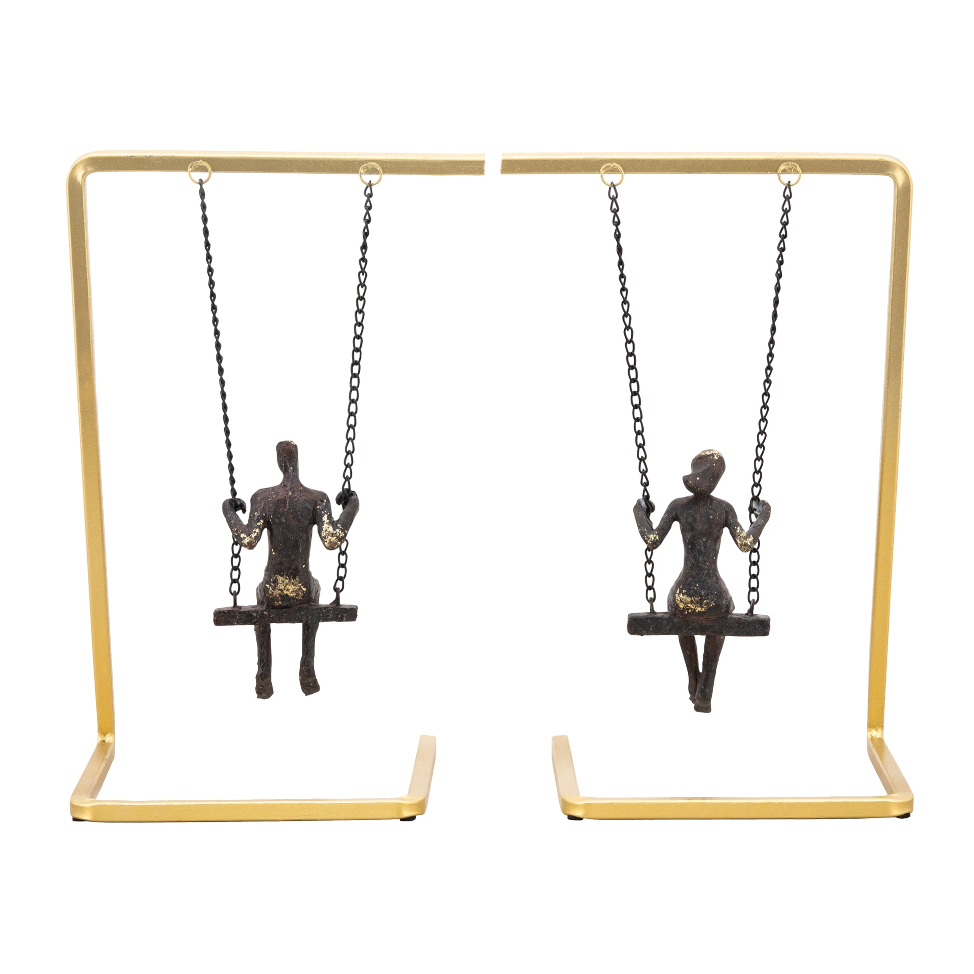 Keep your books in place with the swinging bookends. These pieces are a charming addition to your bookshelf or table top.