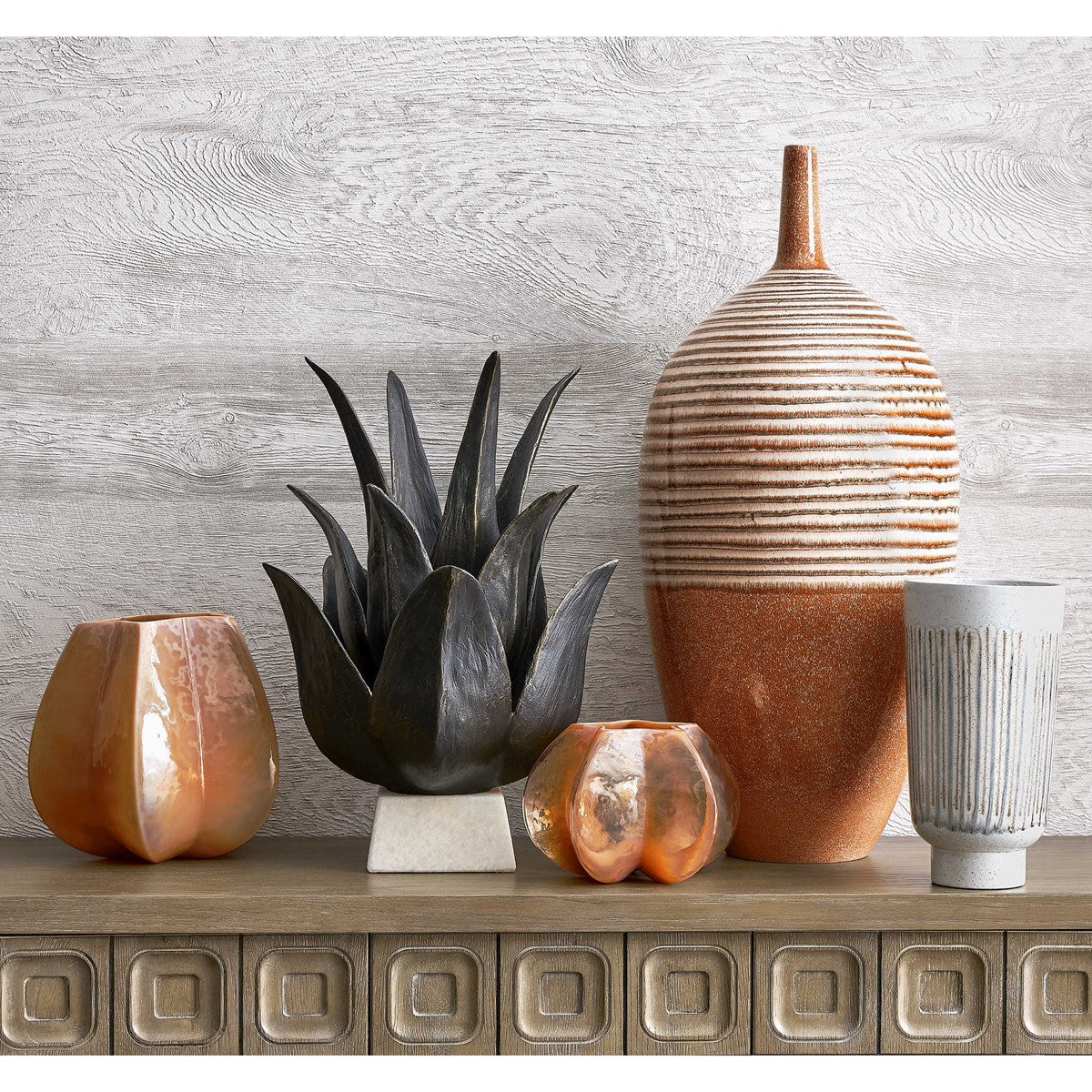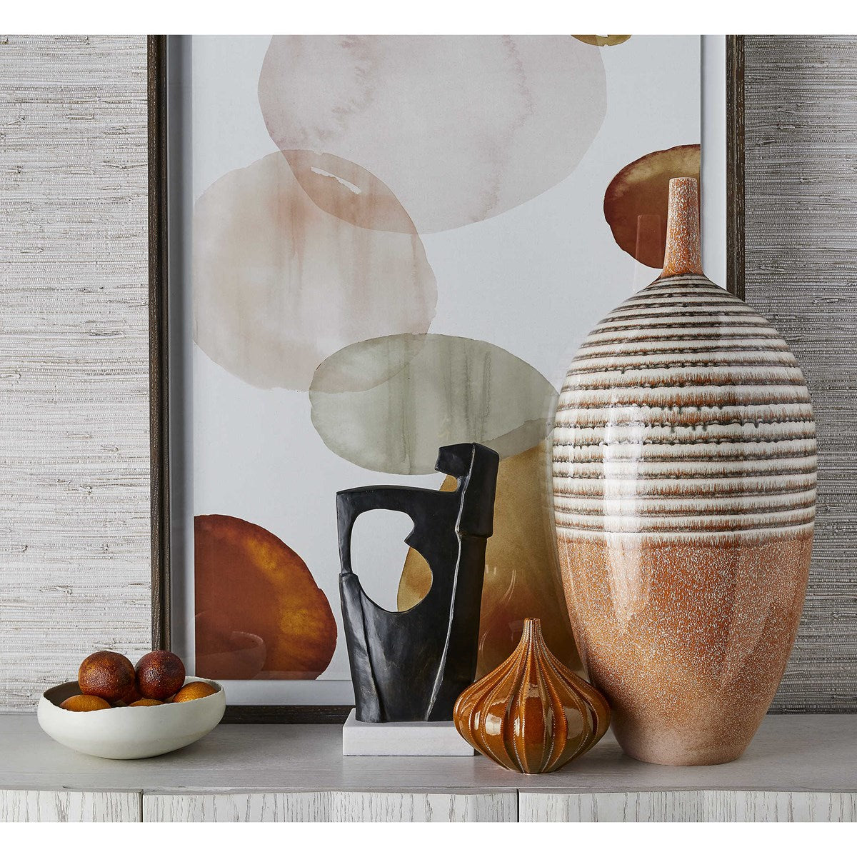 Sedona Bottle Grande is handcrafted by European artisans from ceramic and finished in a burnt orange glaze with hand applied ivory and gray striped details.