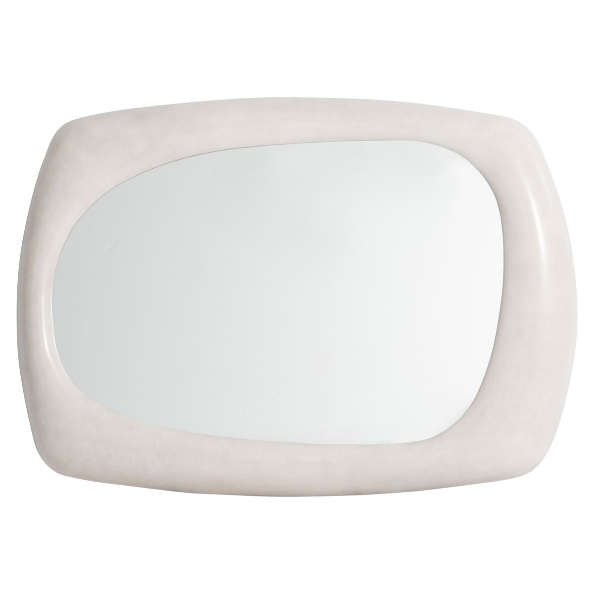 Freeform shaping defines modern organic style for the Sereno mirror. The frame is designed of cast resin with a smooth faux stone texture in Lutra finish. The mirror can be hung either horizontally or vertically.