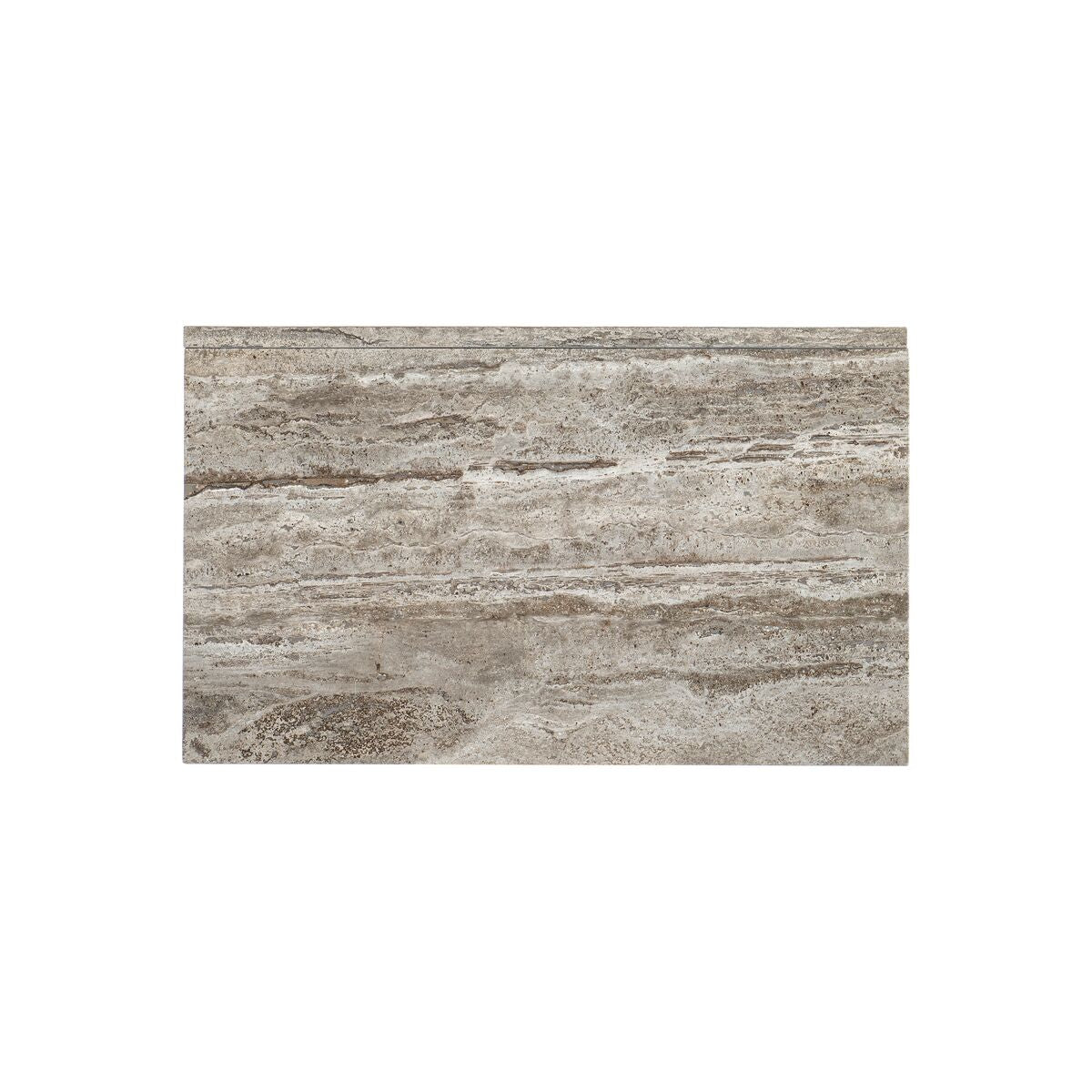 - Silver travertine drawer box with "X"-shaped oak wood base in Grigio finish