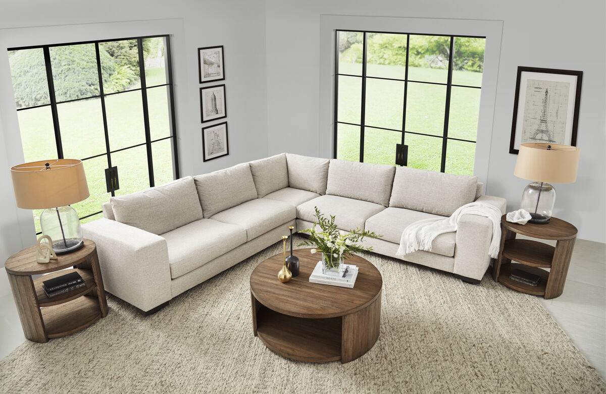 Welcome, curves. This round end table is a petite version of our circular cocktail table, adding the same contrasting visual element that breaks up blocky living spaces with its organic curves. Solid ash wood construction is finished in oiled oak veneer that showcases the beauty of visible wood grain, and the high-low texture of the top surface adds an unexpected and subtle texture that honors the feel of natural materials.