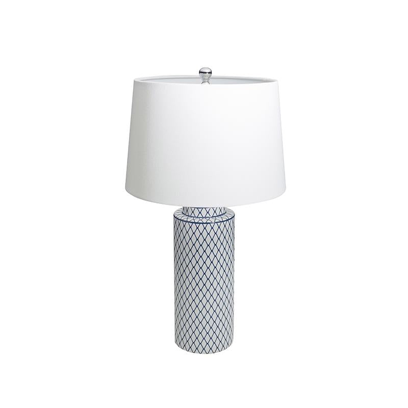 Stoneware Table Lamp Lattice Pattern, Indigo White
