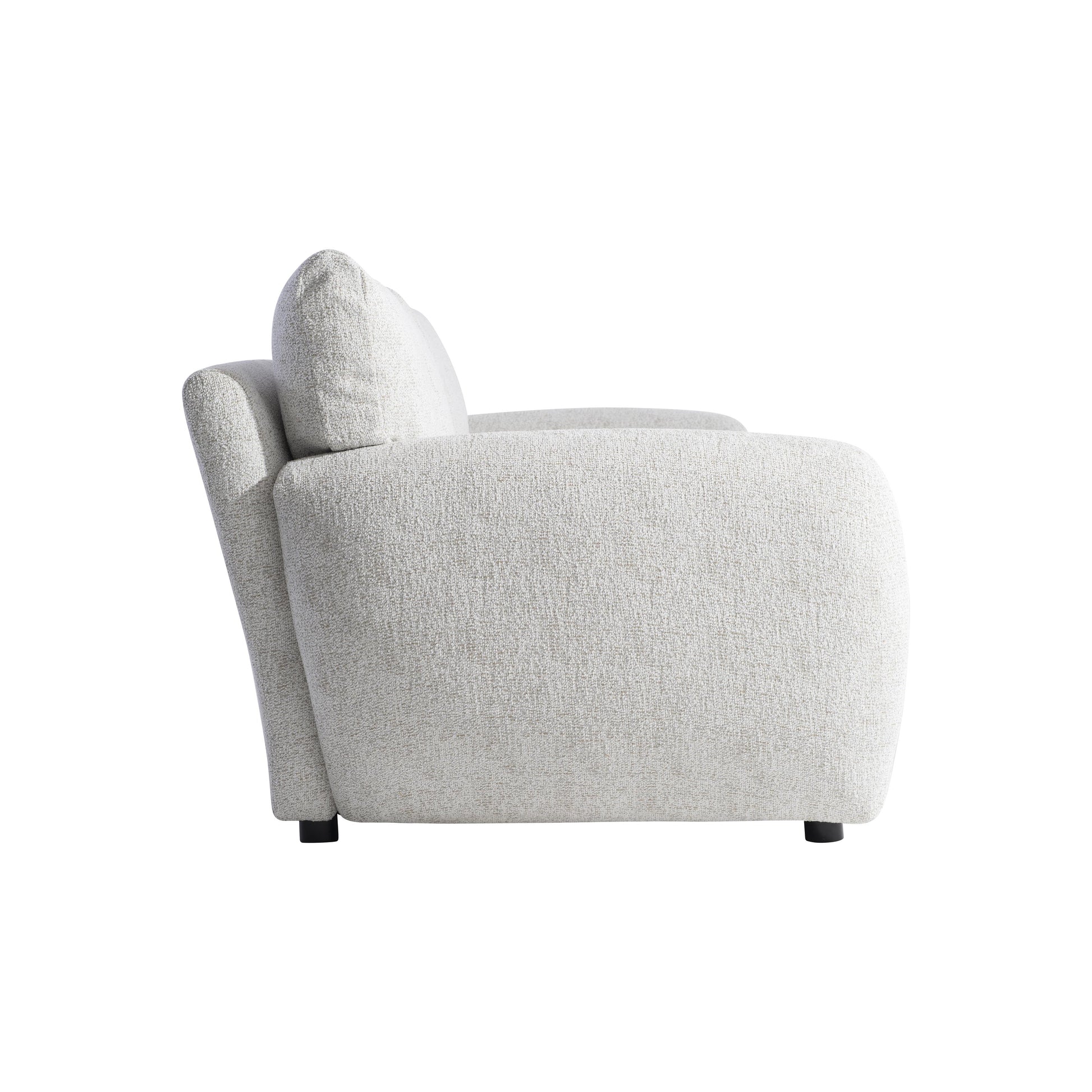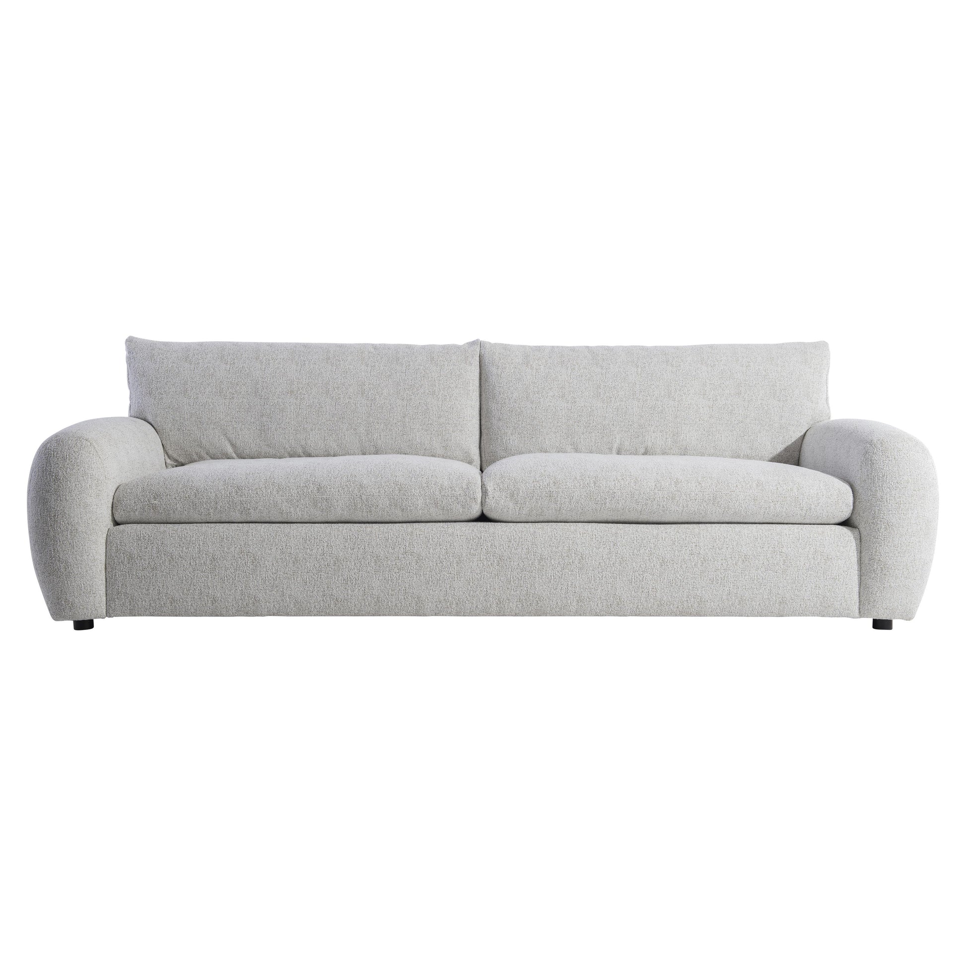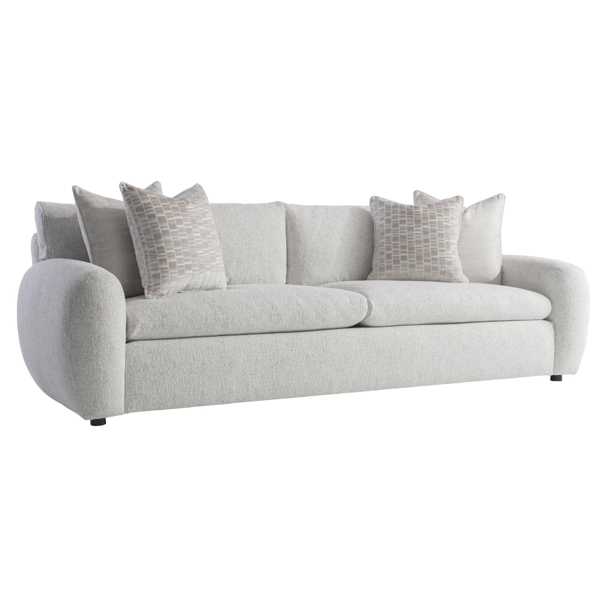 The Teddy sofa makes a comfort statement with lush, curved arms and deep cushions. Modern lines complement the curves for a unique and balanced style. This sofa also includes four decorative pillows.