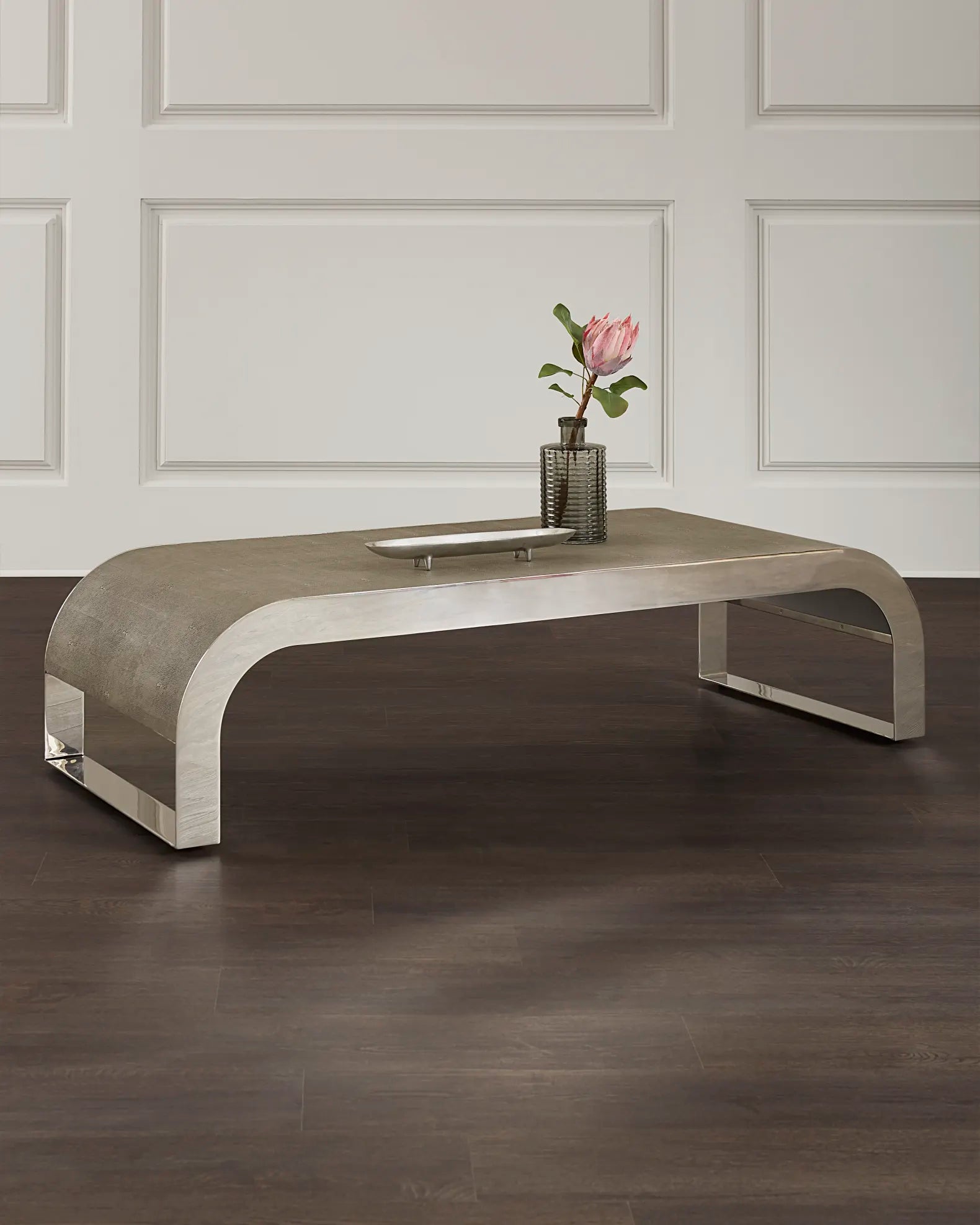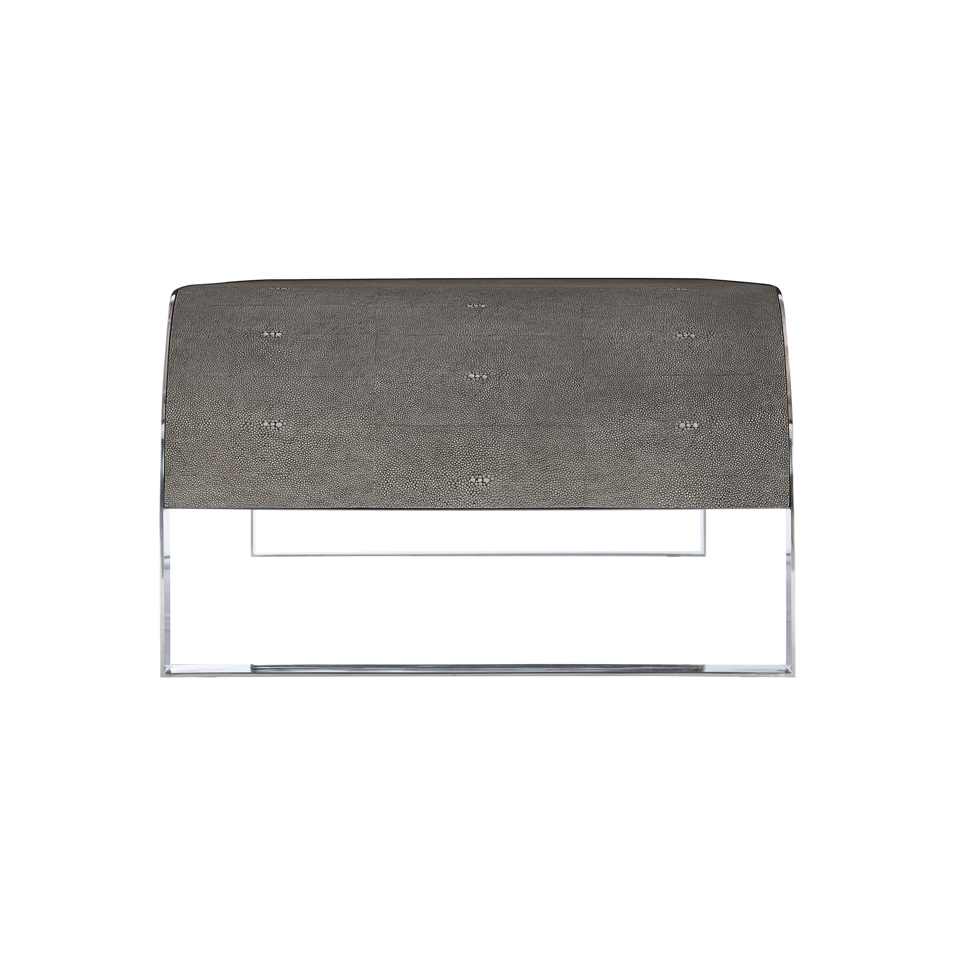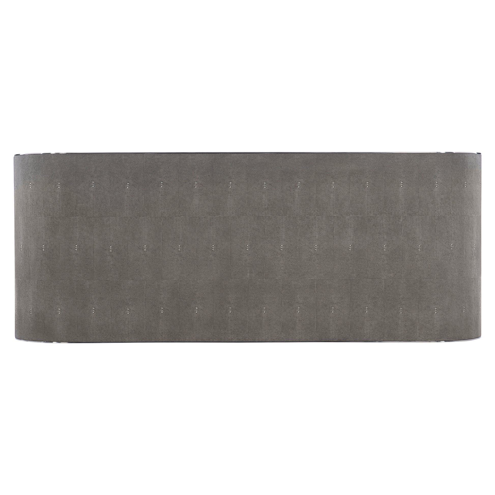 - Inset Faux Gray Shagreen top panel and waterfall sides